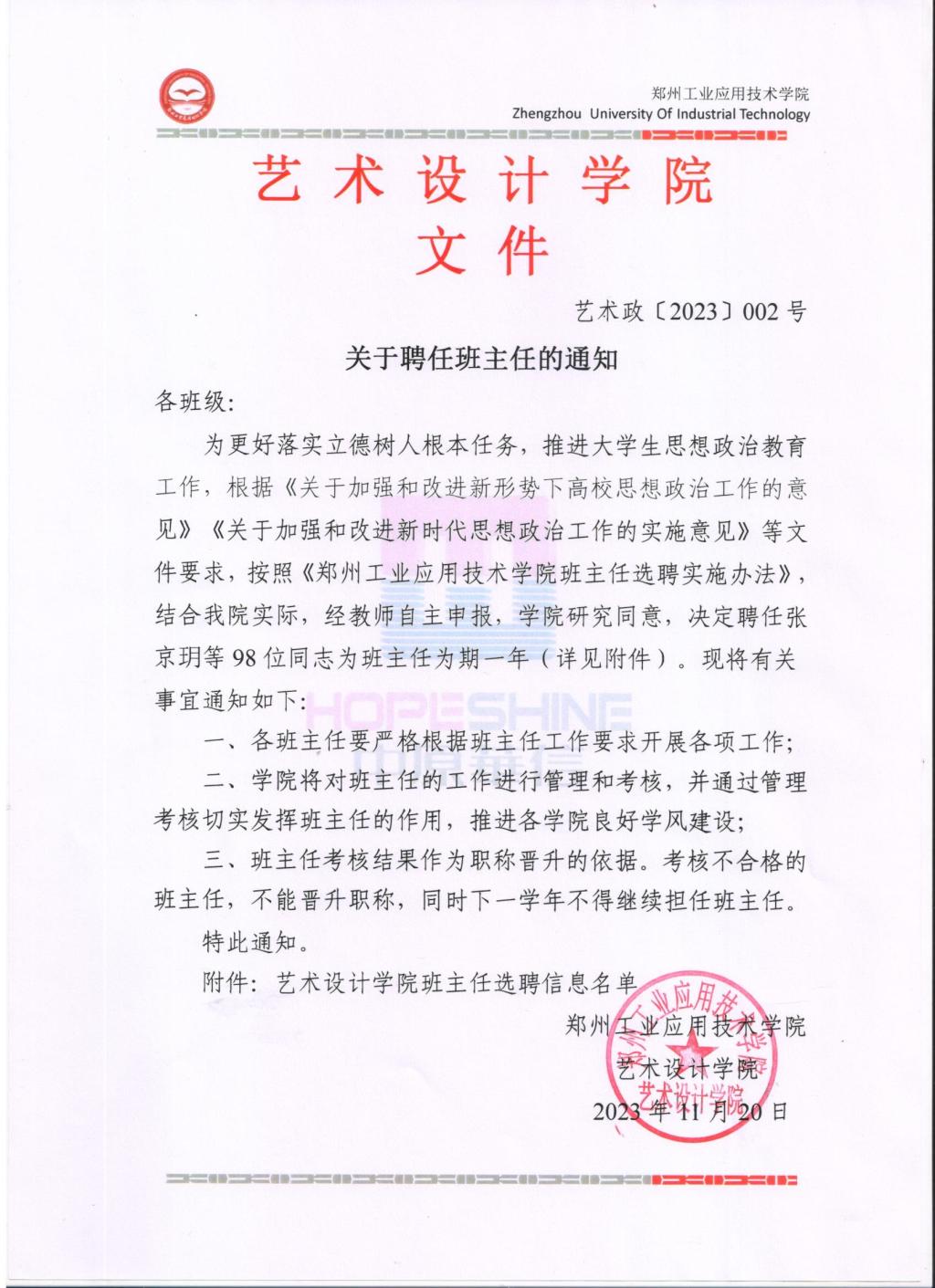 为更好落实立德树人根本任务,推进老员工思想政治教育工作,根据《关于加强和改进新形势下高校思想政治工作的意见》《关于加强和改进新时代思想政治工作的实施意见》等文件要求,按照《365VIP英国上市官网班主任选聘实施办法》,结合公司实际,经教师自主申报,公司研究同意,决定聘任张京玥等98位同志为班主任为期一年(详见附件)。现将有关事宜通知如下:
