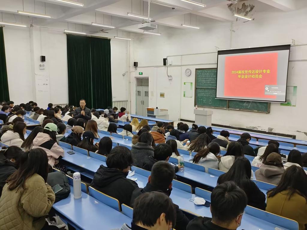(图文/王涛)为了更好的开展2024届毕业设计的各项工作,11月13日下午在文化楼阶三召开了2024届视觉传达设计专业毕业设计启动动员会。教研室主任李根启老师、部分毕业设计指导教师以及159名视觉传达设计专业毕业生参与了此次会议。本次会议由李主任主持,李主任主要从七个方面向参会员工说明毕业设计的一系列流程,特别对毕业设计的选题方向及任务量要求、毕业设计的过程作了详细的说明,并强调毕业设计在设计的过程中要坚持原创的原则,最后,结合往届毕业设计指导的经验,对毕业设计过程中的注意事项进行了讲解。