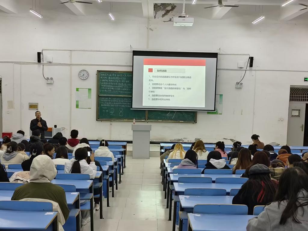 结束之际,李主任又总结了毕业设计的重要性和意义,希望同学们能够高度重视,在后期毕业设计的过程中能主动、及时的与导师沟通,保质保量的完成毕业设计。通过此次动员大会,毕业生普遍表示对毕业设计有了更深层次的认识,为后期有条不紊的开展毕业设计工作奠定了坚实的基础。
