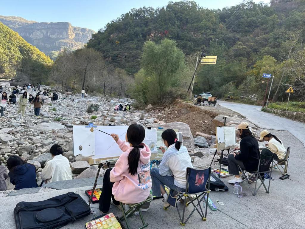 (图/文 卞明影)2023年10月18日,郑工365VIP英国上市官网2023级服装与服饰设计、视觉传达设计、环境设计、产品设计及动画专业全体本科师生抵达河南省林州市石板岩镇郭家庄村,开展秋季写生实习活动,与太行山来了个美丽的约“绘”。 在为期两周的时间里,基础课教研室十余位专业教师带领同学们进行了写生课程实践。