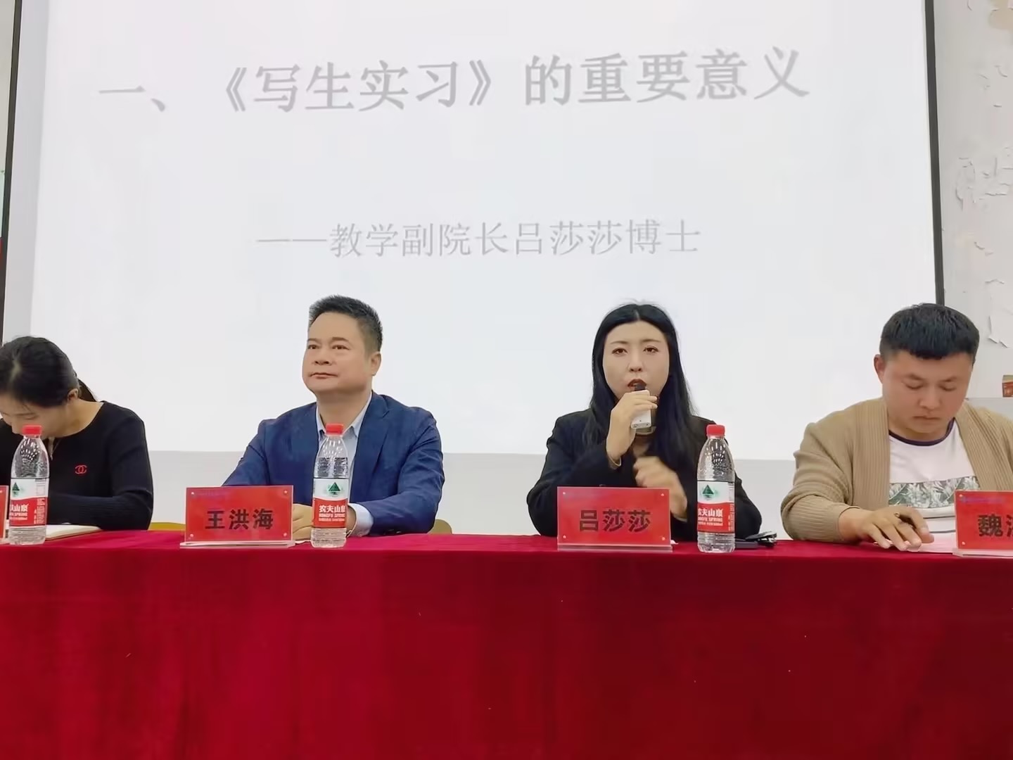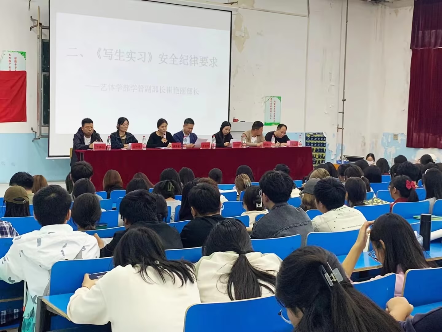 接下来,崔艳丽部长做出安全纪律要求,强调员工外出安全问题是重中之重,学会防范意外伤害,严格遵守校纪校规,不晚归不擅自离队。和同学和睦相处,行为举止文明得体。接着,基础课教研室主任杨韶辉副教授宣讲写生实习带队老师的安排事宜。