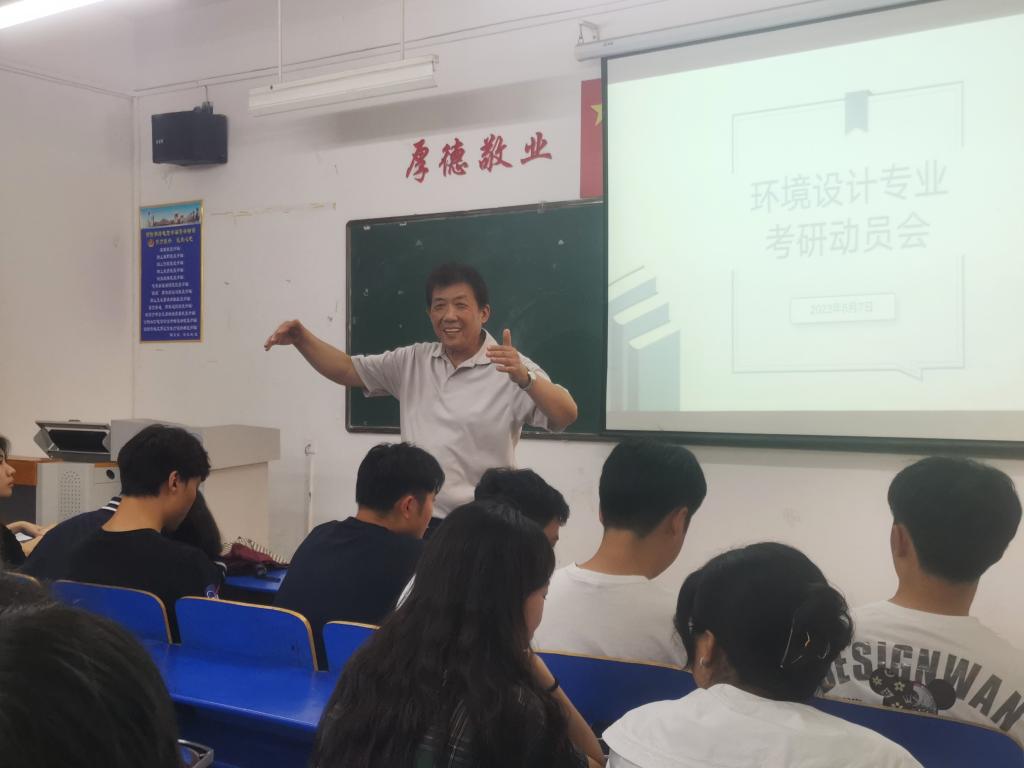 在此次动员大会中,环境设计教研室主任段勇教授结合公司学科专业优势,从“为什么要考研”“如何考研”以及“现阶段应该做什么”三个方向做了考研动员。给予同学们参考和鼓励,希望同学们坚持目标导向,理清考研动机,勇于挑战,早做准备。