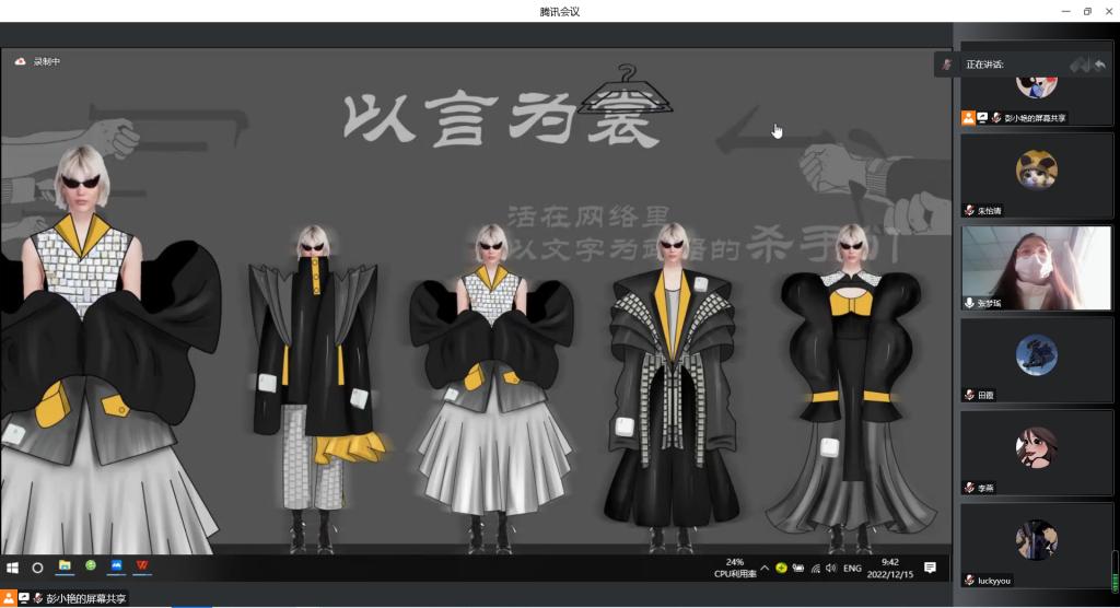 (图/文 王越)2022年12月15日上午,公司服装与服饰设计专业的师生通过线上会议的方式,如期开展了2023届毕业生的毕业设计开题答辩会议。参与答辩的48名员工分为两个小组,分别由服装设计教研室教师彭小艳、杨晓密主持各小组的答辩活动。