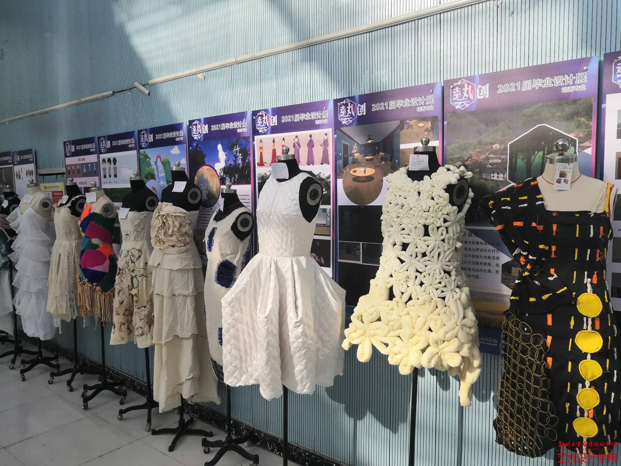 (图/周晶晶 文/贺红阳 曹馨)2021年12月3日至8日,公司18级服装与服饰设计、20级级服装与服饰设计(专升本)两个班员工的《高级时装设计》结课作业在艺术楼一楼大厅展出,为期6天。高级时装设计是服装与服饰设计专业的一门职业方向接口课,具有很强的实践性特点。