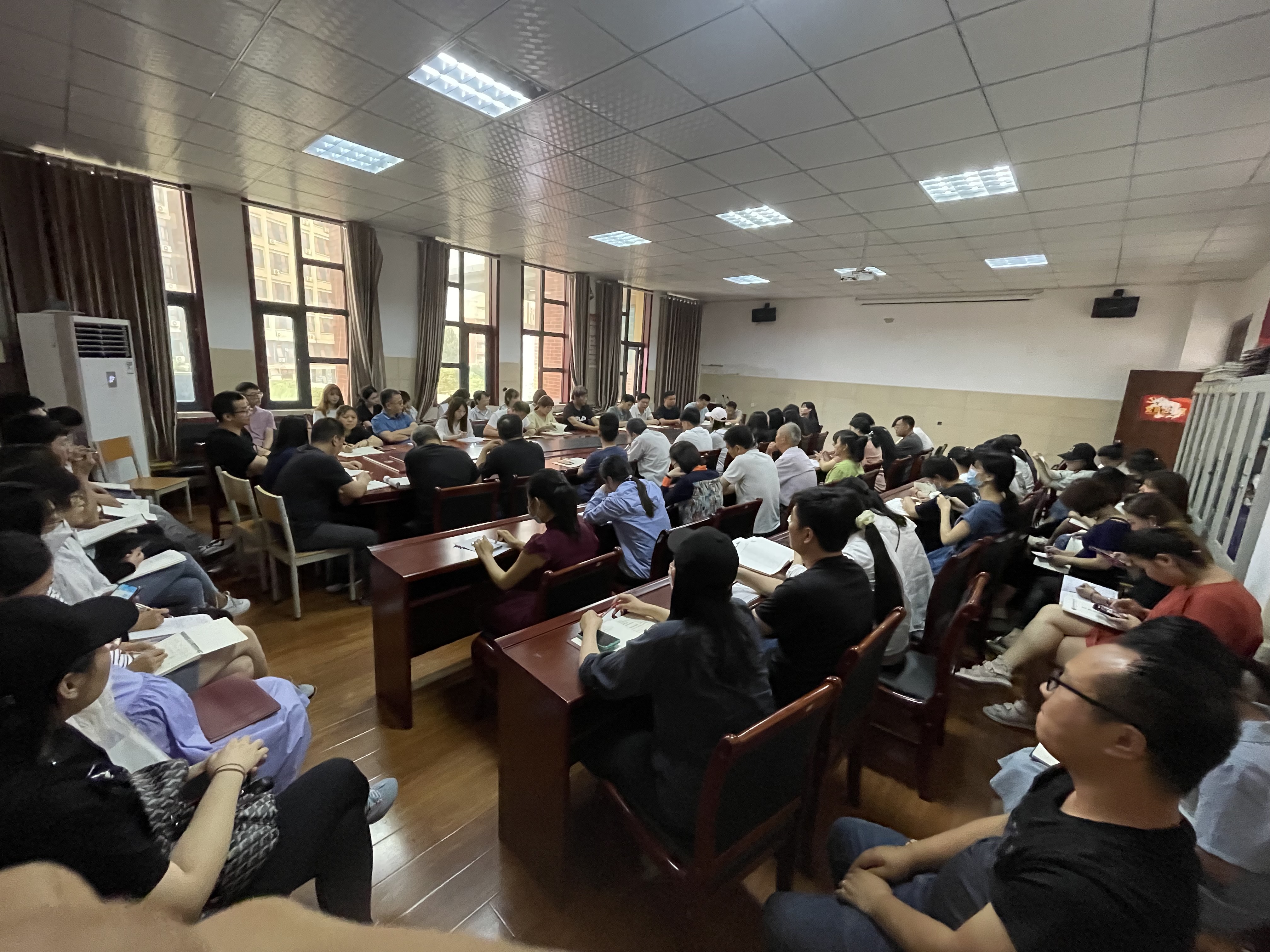 (图/文 席静)为更好地开展公司工作,保证审核评估工作在公司顺利开展,2021年6月1日下午,在艺术楼212会议室召开全体教师会议。公司经理宋荣欣教授、党总支书记樊洪深同志、副经理姜一梅副教授出席会议,全体教师参加了本次会议。会议由办公室主任魏洪丞老师主持。