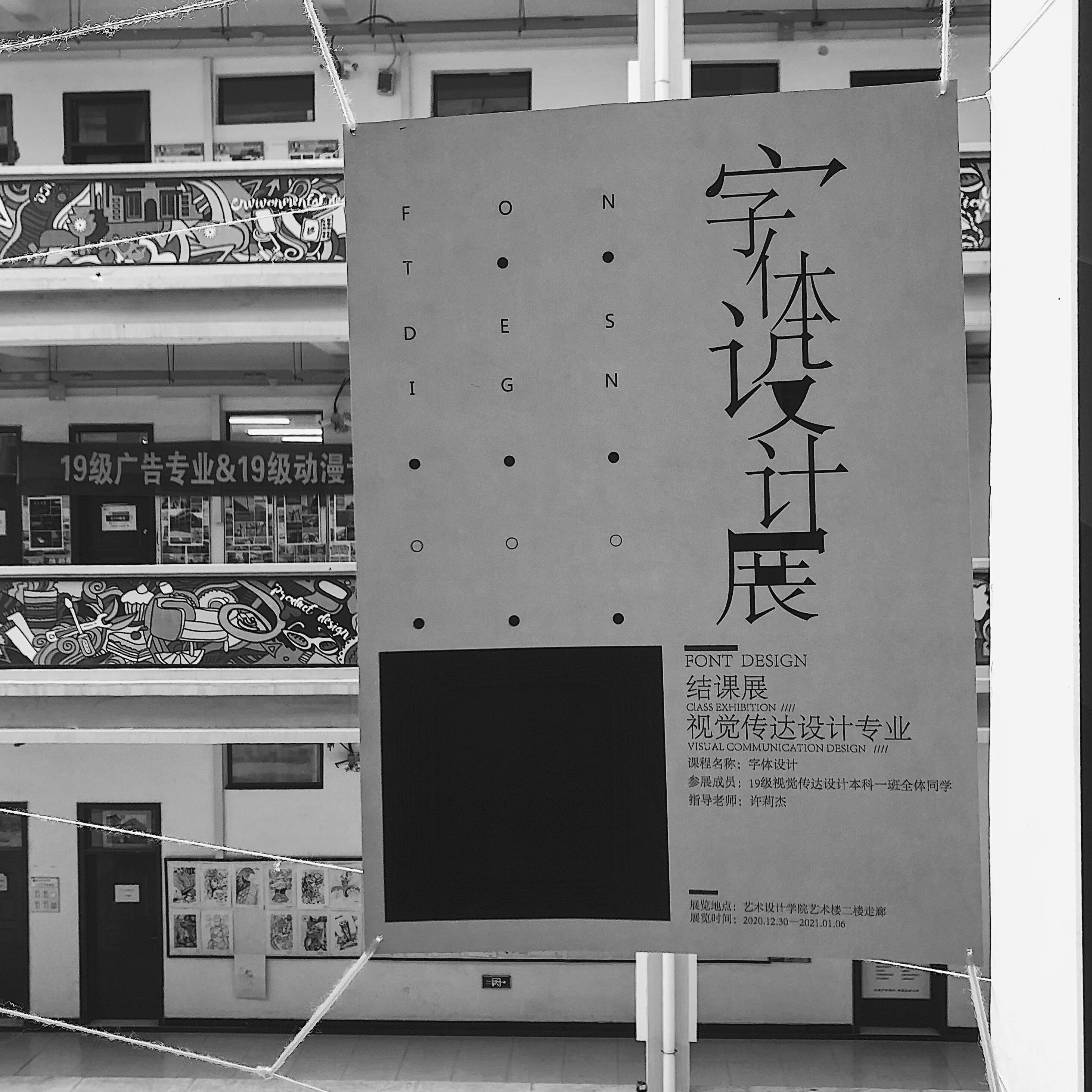(图/文 许莉杰、闪易)为了更好地展示公司视觉传达专业教学成果,促进各年级之间的交流,2020年12月30日视觉传达设计专业《字体设计》结课成果展在公司艺术楼2楼走廊展出,共展出“郑工人”、“艺起同行”、“再见郑工”三个校园文化主题,以及中国传统文化二十四节气主题字体海报设计,作品共129余件。主要指导老师为闪易、许莉杰,展览为期一周。