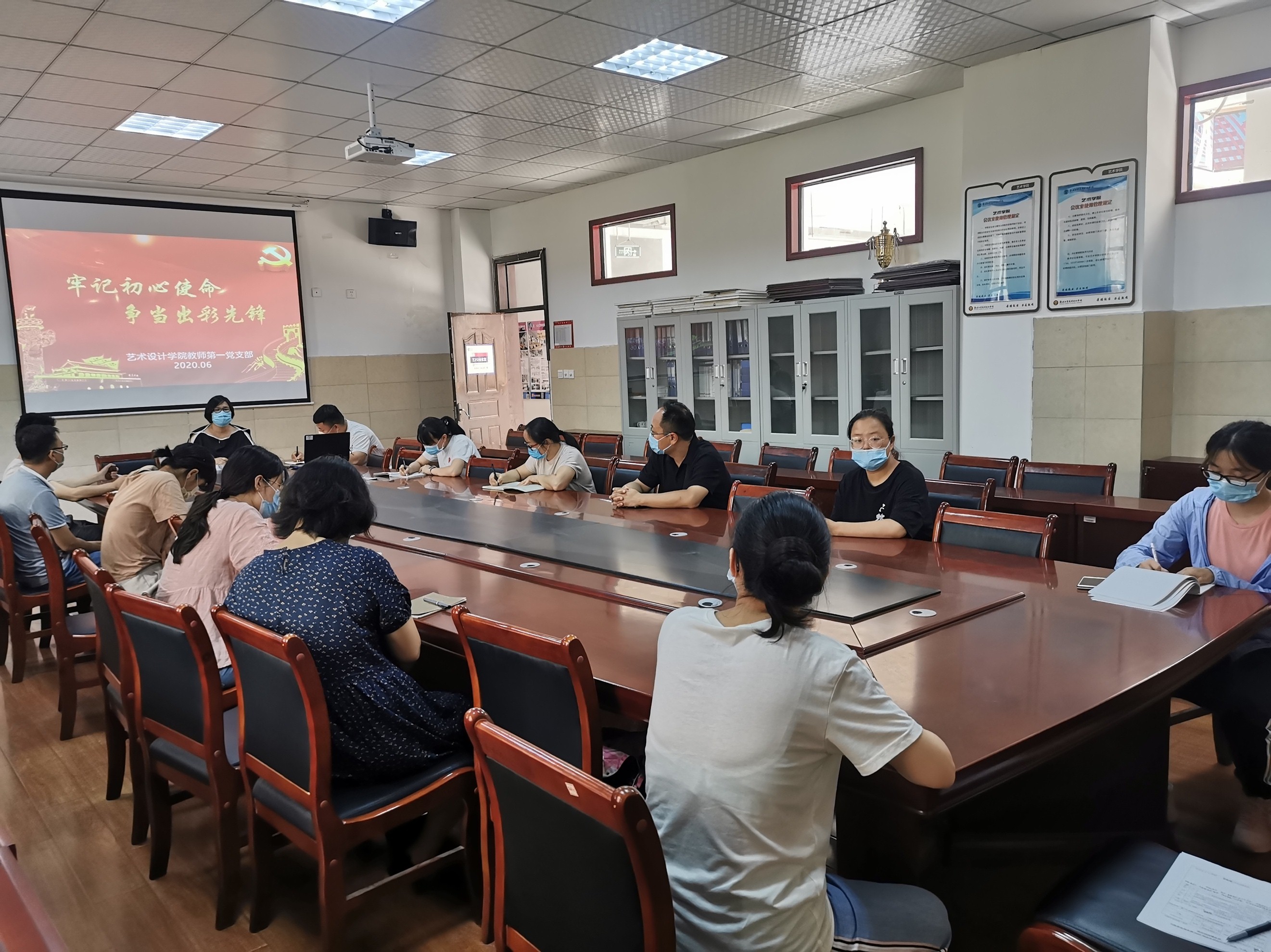 (图文/韩梦婷) 为深入学习贯彻习近平新时代中国特色社会主义思想和党的十九大精神,巩固“不忘初心、牢记使命“主题教育成果,365VIP英国上市官网教师第一党支部于2020年6月29日下午在艺术楼212会议室开展“牢记初心使命、争当出彩先锋”主题党日活动,活动由支部书记张凡同志主持召开,支部全体党员参加。