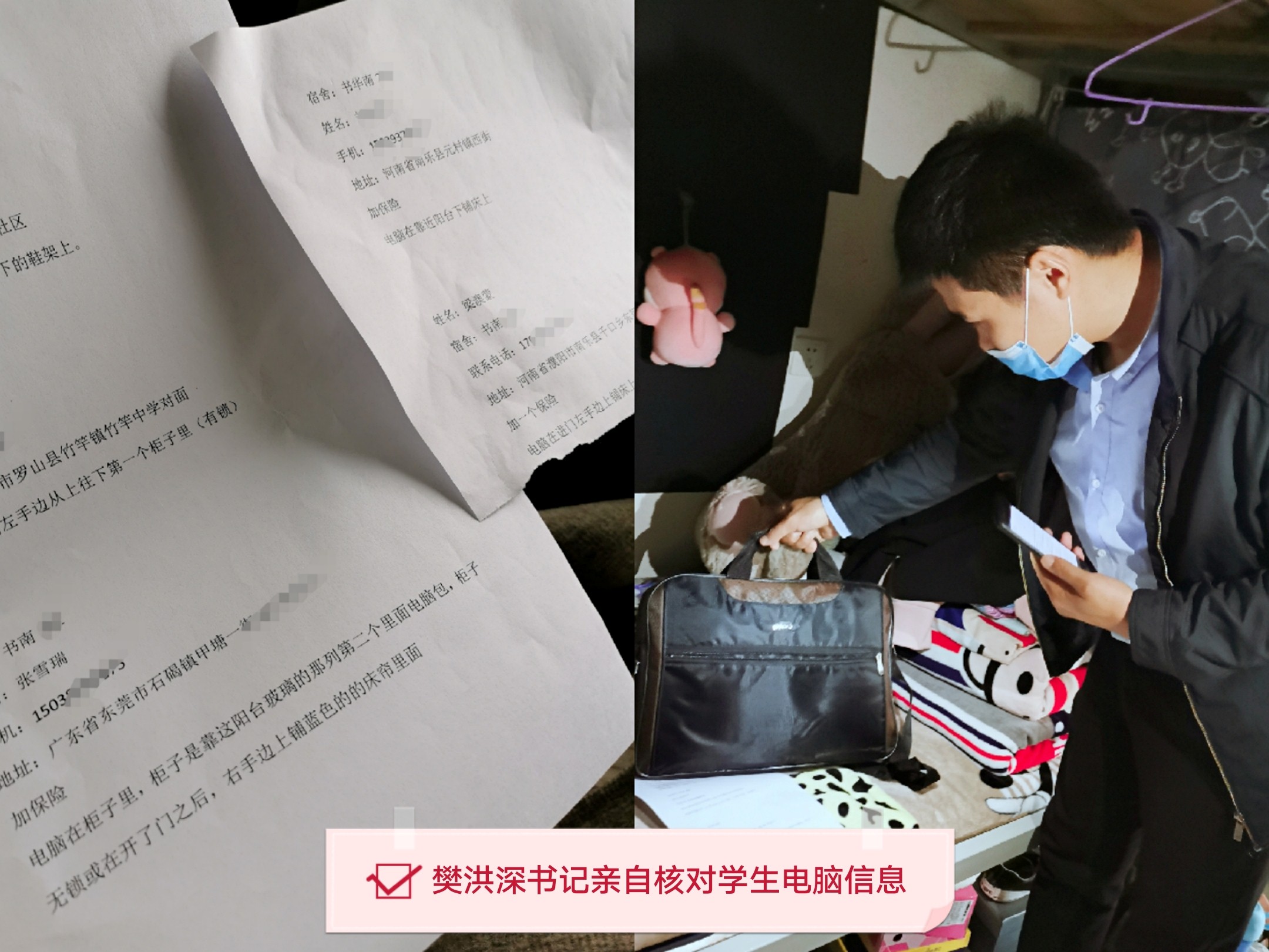 (文/魏洪丞 图/姜一梅)随着线上教学的持续推进,为保证员工线上学习效果,4月16日上午,在公司党总支书记樊洪深同志的带领组织下,组成了由教学副经理姜一梅、办公室主任魏洪丞、团总支书记从明及多媒体管理教师范进路老师等5人参与的疫情服务团队,应员工要求,在宿管老师的陪同下,分别到致远楼、书华楼等员工宿舍,帮员工拿出电脑,为远在家乡或外地的员工邮寄电脑。