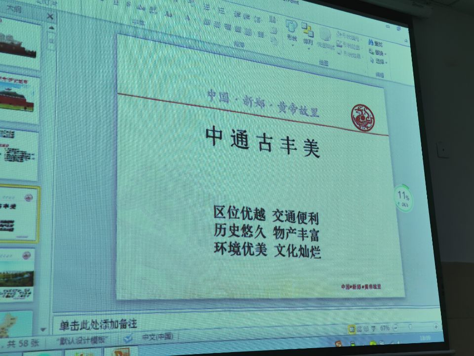 刘董事长围绕“中、通、古、丰、美”五个关键字,从新郑的地理、历史、文化、艺术等角度对新郑的“古”与“今”进行了全面解读,上至八千年的裴李岗文化、五千年的黄帝文化,下至如今的人流、物流、信息流和资金流的汇集情况,从古风、诗经到如今的拜祖大典,更是讲解到具茨山的岩画艺术,他强调:“新郑是中华第一古都,史有记载,地有确迹,代有传述,天有感应!”他同时还强调:“对文化要有一种敬畏的心理。”他幽默生动的解读感染了全场,掌声不断。