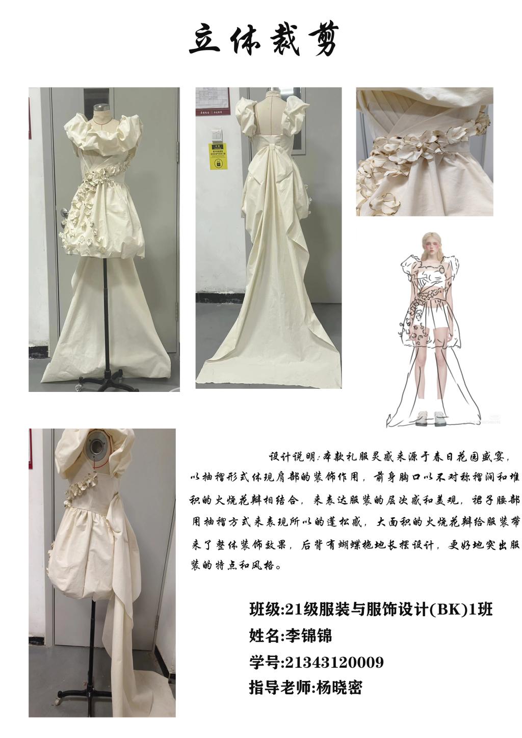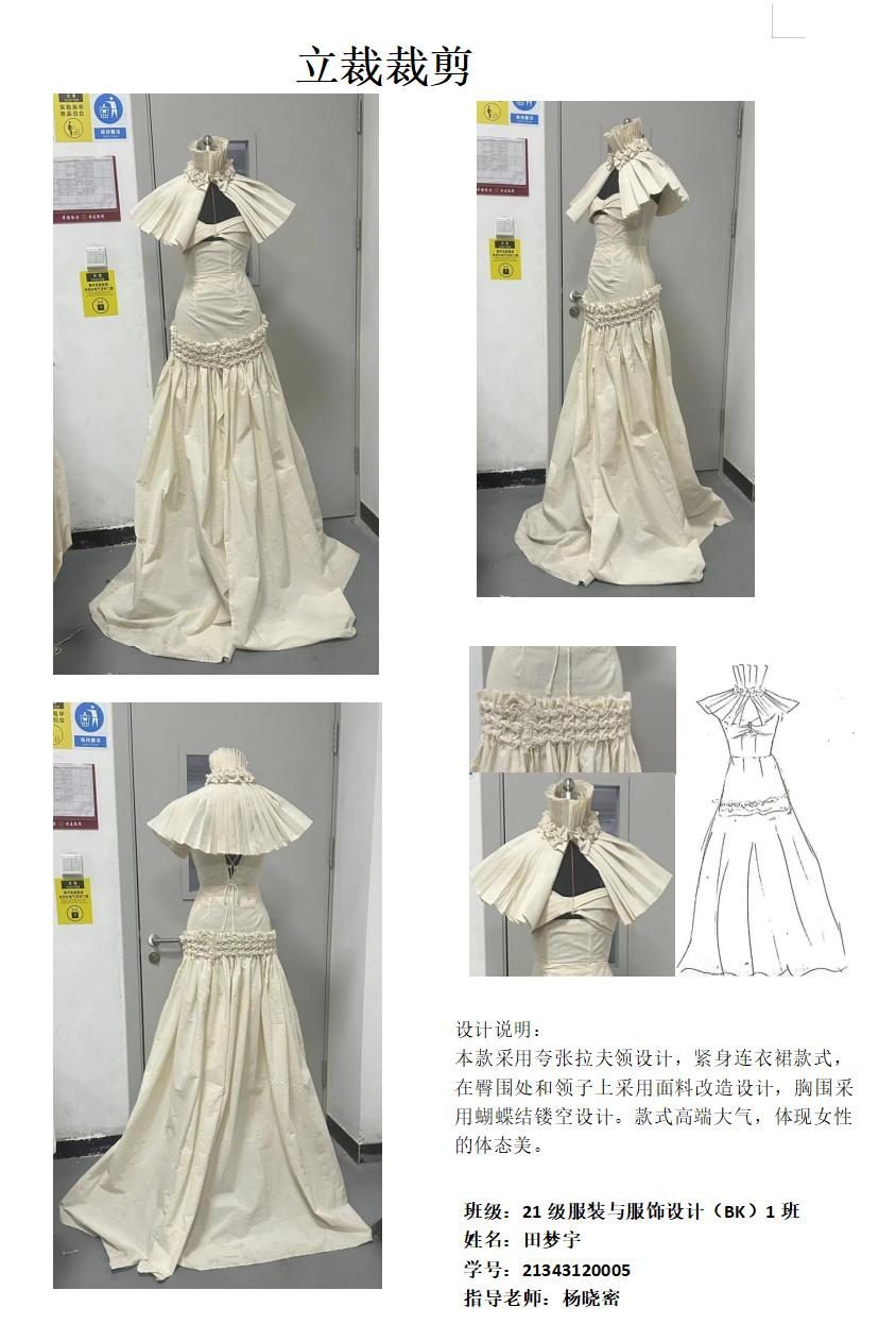 (图/文 杨晓密)2021级服装与服饰设计专业《立体裁剪》线上、线下联合展于2014年1月2日同时开展,线下展览在艺术楼一楼走廊展出,展览持续三天。本次展出是以立体造型在服装中的体现为命题,要求员工基础立裁与创意造型相结合,设计制作出完整的立裁作品。