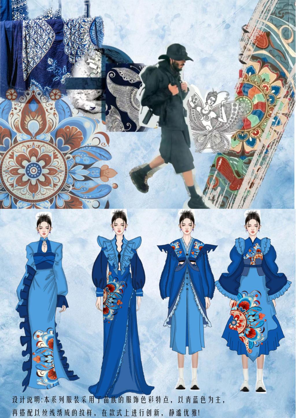 (图/文 王越)2023年10月16日至10月26日,公司2020级服装与服饰设计(BK)1班、2班、2022级服装与服饰设计(专升本)1班共56名员工前往湖南湘西和湖北恩施地区开展民族服饰采风课程。11月20日,以上员工在艺术楼一楼为师生带来了一场民族服饰采风课程结课展览。为期10天的采风课程换来了一场服装盛宴,同学们的作品风格多样,硕果丰盛,令人神往。