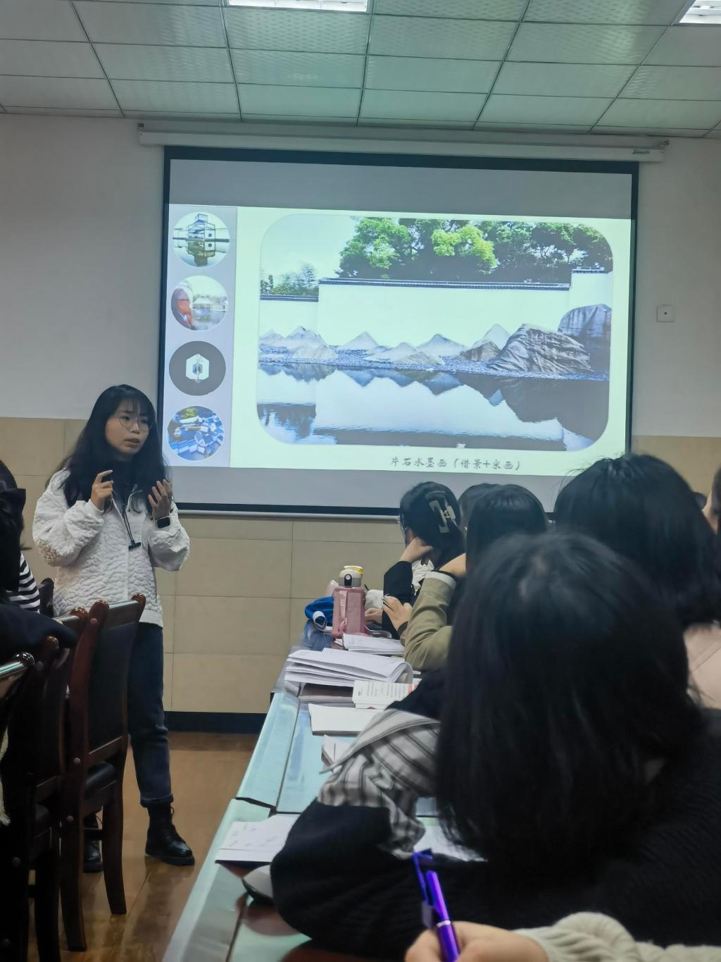 首先,环境设计教研室副主任郭克景对此次活动的目的进行了简单阐述。随后马瑞老师进行了示范课堂展示。马老师的课程环节设计巧妙、环环相扣、步步紧凑、深入浅出,给观课老师带来了一场景观设计教学的饕餮盛宴。不仅如此,马老师还在讲授中将课程内容与思政元素巧妙融合,让员工在学习专业知识的过程中,感受中华民族优秀传统文化的魅力,感受大国工匠的专业与敬业,培养了员工的工匠精神和感恩社会的思想意识。