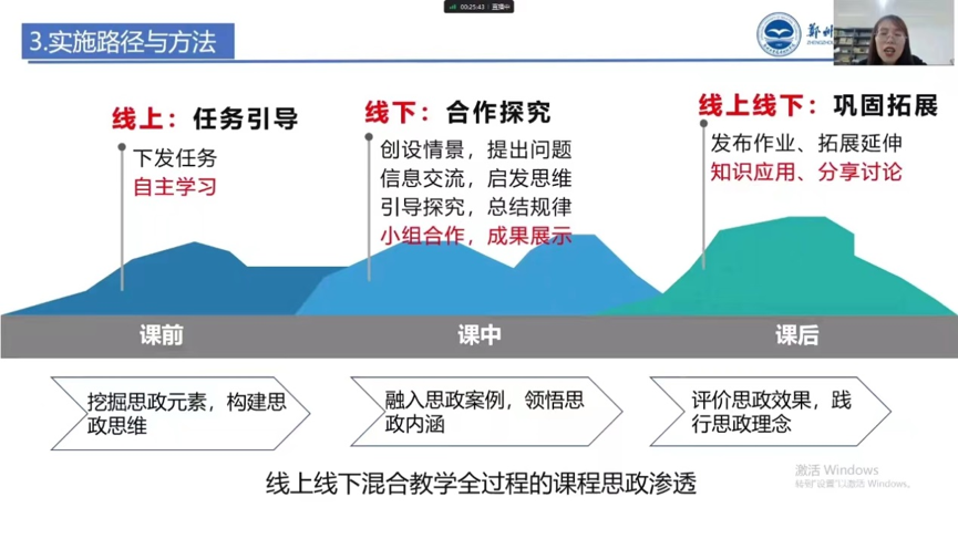 会议中,建筑工程公司丁勇花老师结合授课课程的特色通过课程建设实施情况和课堂授课展示两个环节为全体教师进行了一场完整的线上课堂教学展示,并作了线上教学经验的分享。