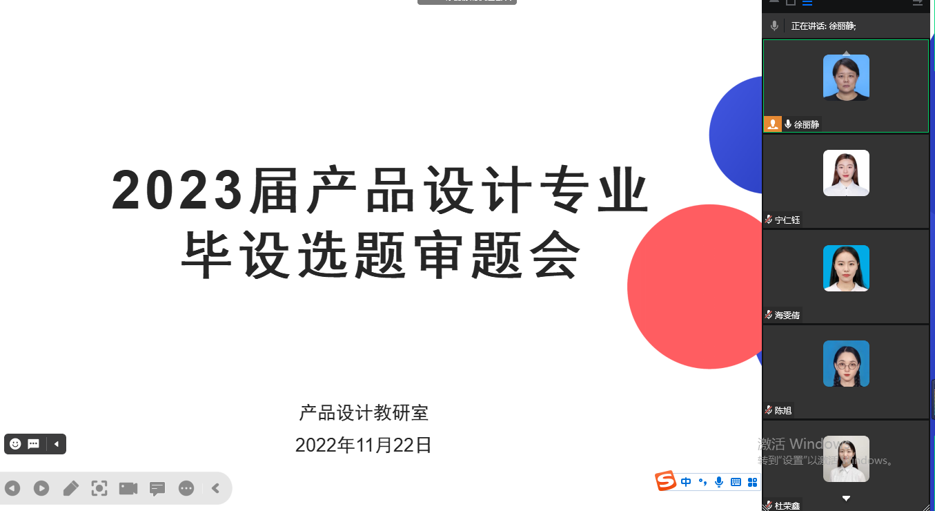 (图/文 陈旭)2022年11月22日下午,产品设计教研室组织开展了2023届产品设计专业选题线上审题会,会议由教研室副主任徐丽静副教授主持。