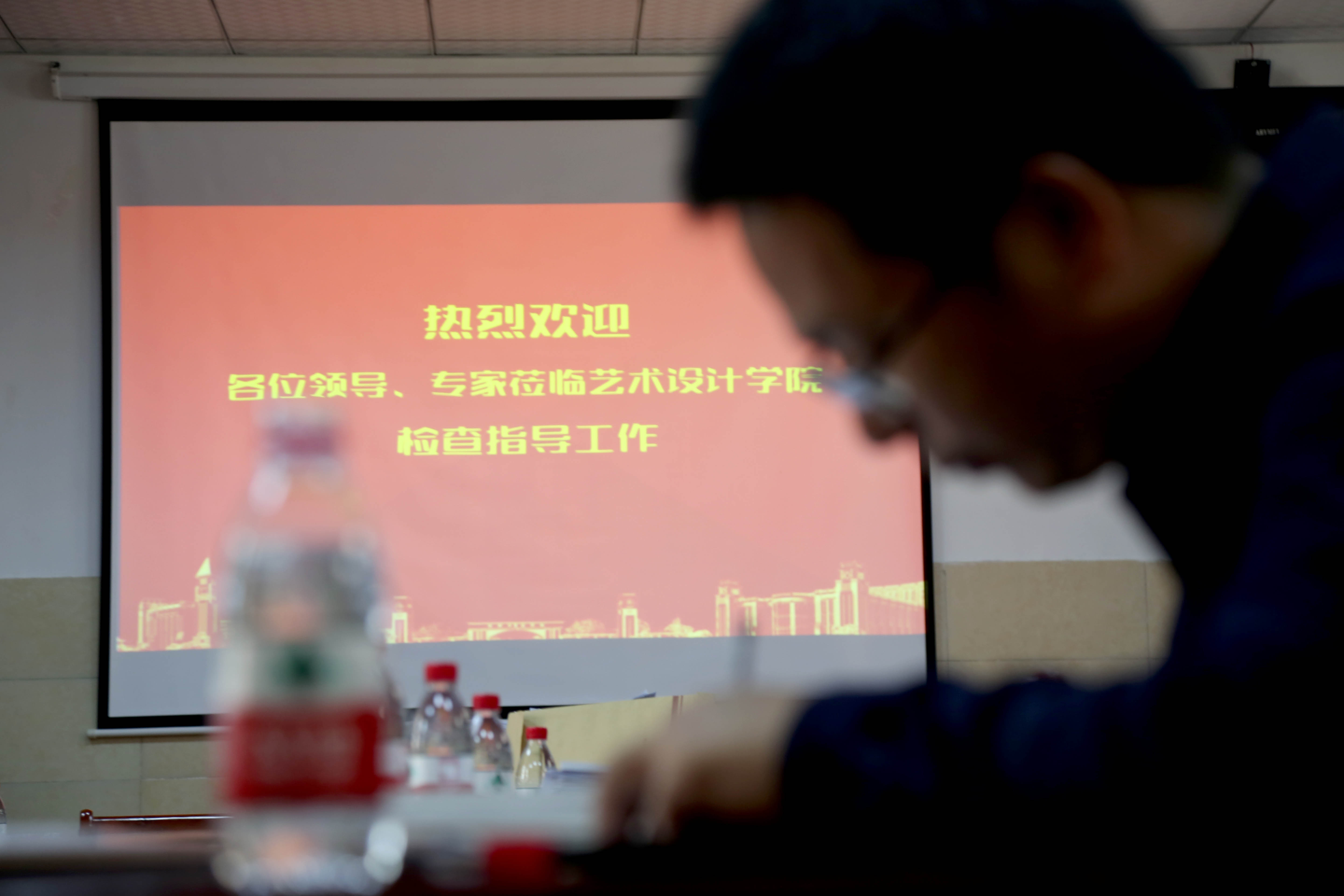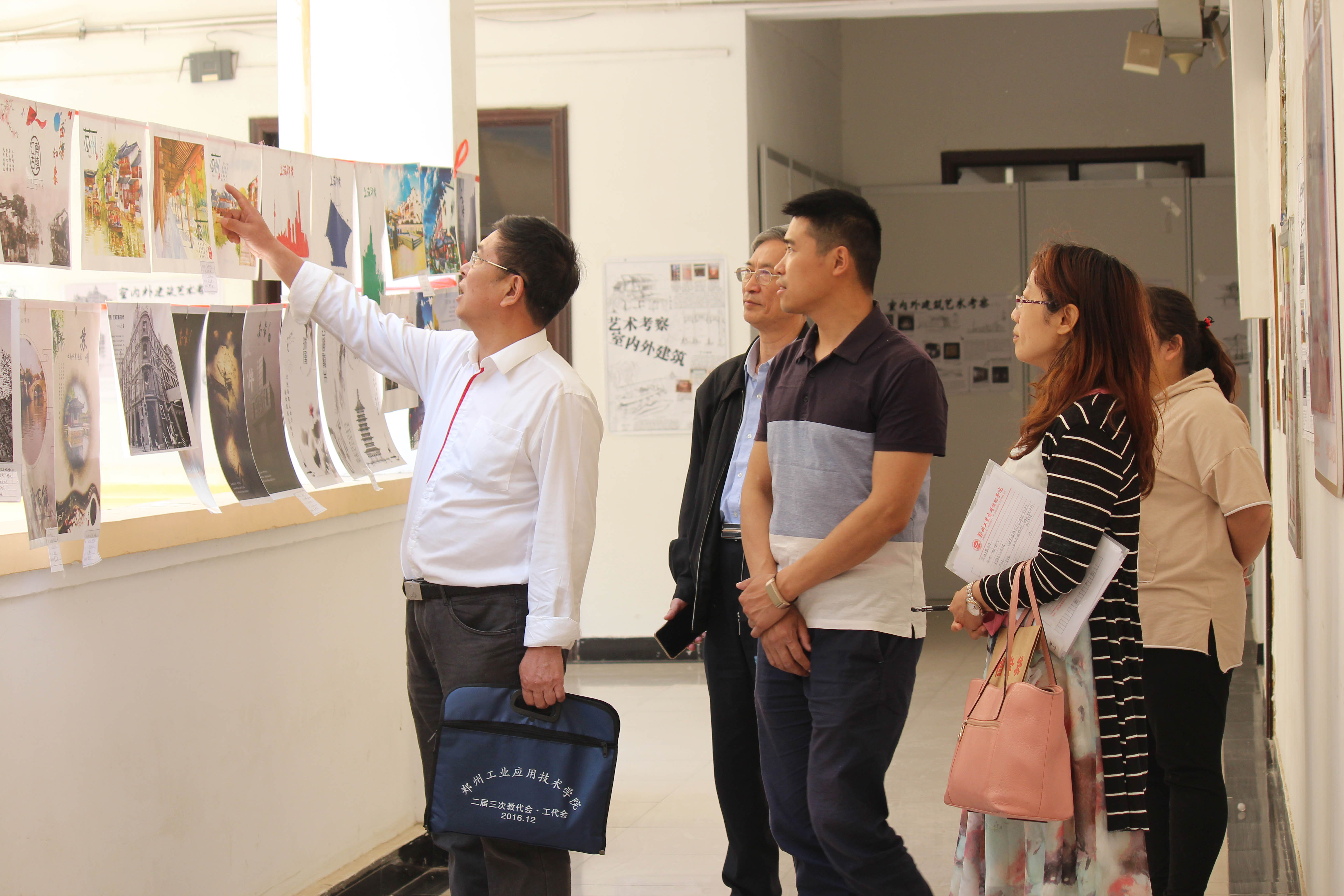 图为:公司宋荣欣经理为校领导介绍公司员工作品