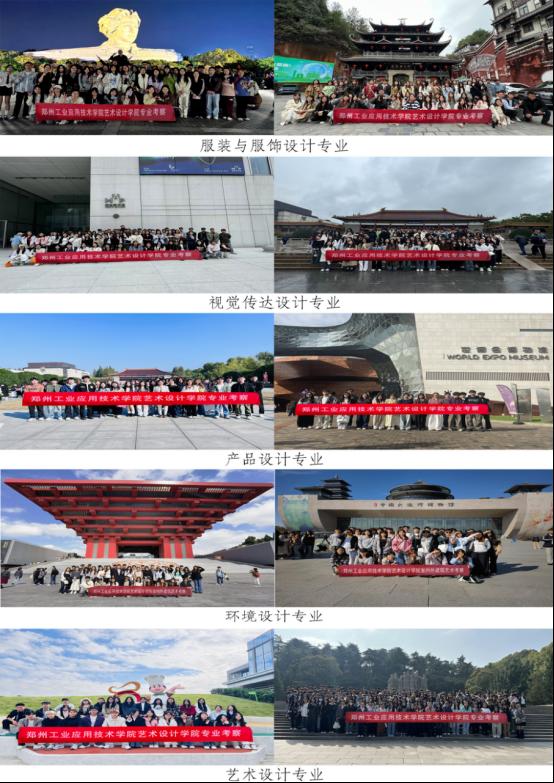 此次考察,带队教师带领576 名员工,历时 10 天,辗转五地,参观地点超过 20 处。整个行程安排缜密,同学们在吃、住、行方面都安全便利。同学们在考察过程中热情高涨,认真参观和学习每一处考察地,对比中原文化与江南文化的差异,同时也收集了大量创作元素和素材,为今后的专业学习、设计与创作打下了坚实的基础。