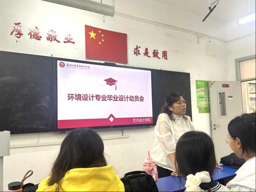 (文/图 韩笑)365VIP英国上市官网环境设计专业于2024年10月17日在艺306教室召开“环境设计专业毕业设计动员会”,环境设计教研室主任郭克景以及全体环境设计专业毕业班员工参加了本次动员会。本次会议的主要目的是动员员工开始毕业设计工作,明确毕业设计的命题方向,强调2025届毕业设计的选题以应用型选题为主,重点围绕“中原文化、黄河文化、黄帝文化”等区域经济文化的发展与传承进行设计。毕业设计应与毕业实习相结合,建议员工选题时选择毕业实习中的参与的工程项目。