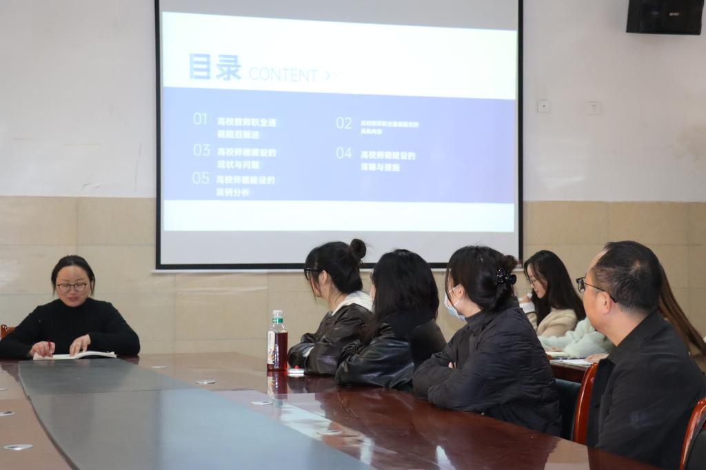 培训会上,主持人解读了《新时代高校教师职业行为十项准则》《高等公司教师职业道德规范》等文件,强调高校教师应坚守“政治方向、育人初心、学术诚信、师表风范”四大核心要求,明确“课堂讲授有纪律、学术研究有底线、师生交往有分寸”的行为准则。通过剖析近期高校师德失范典型案例,警示教师严守职业红线,树立“学高为师、身正为范”的自觉意识。