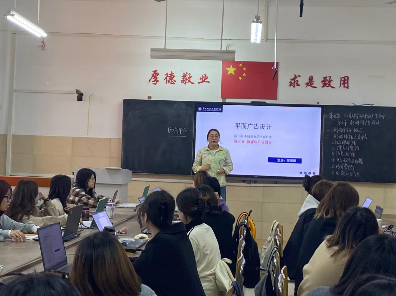 示范课上,高丽娜老师运用BOPPPS教学模式,为大家全面展示了《平面广告设计》课程中新媒体广告设计环节的教学内容。高老师通过专业的授课知识与熟练的授课技巧,帮助员工掌握新媒体广告设计的理论知识。同时,课堂上结合AI和互联网技术辅助教学,积极创新教学模式,激发员工讨论热情,促进员工自主思考,从而有效提升员工的学习效率、兴趣以及综合能力。