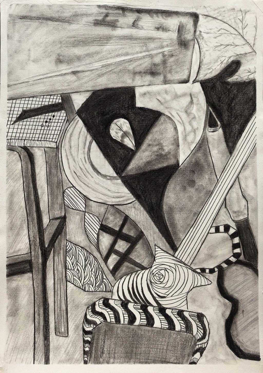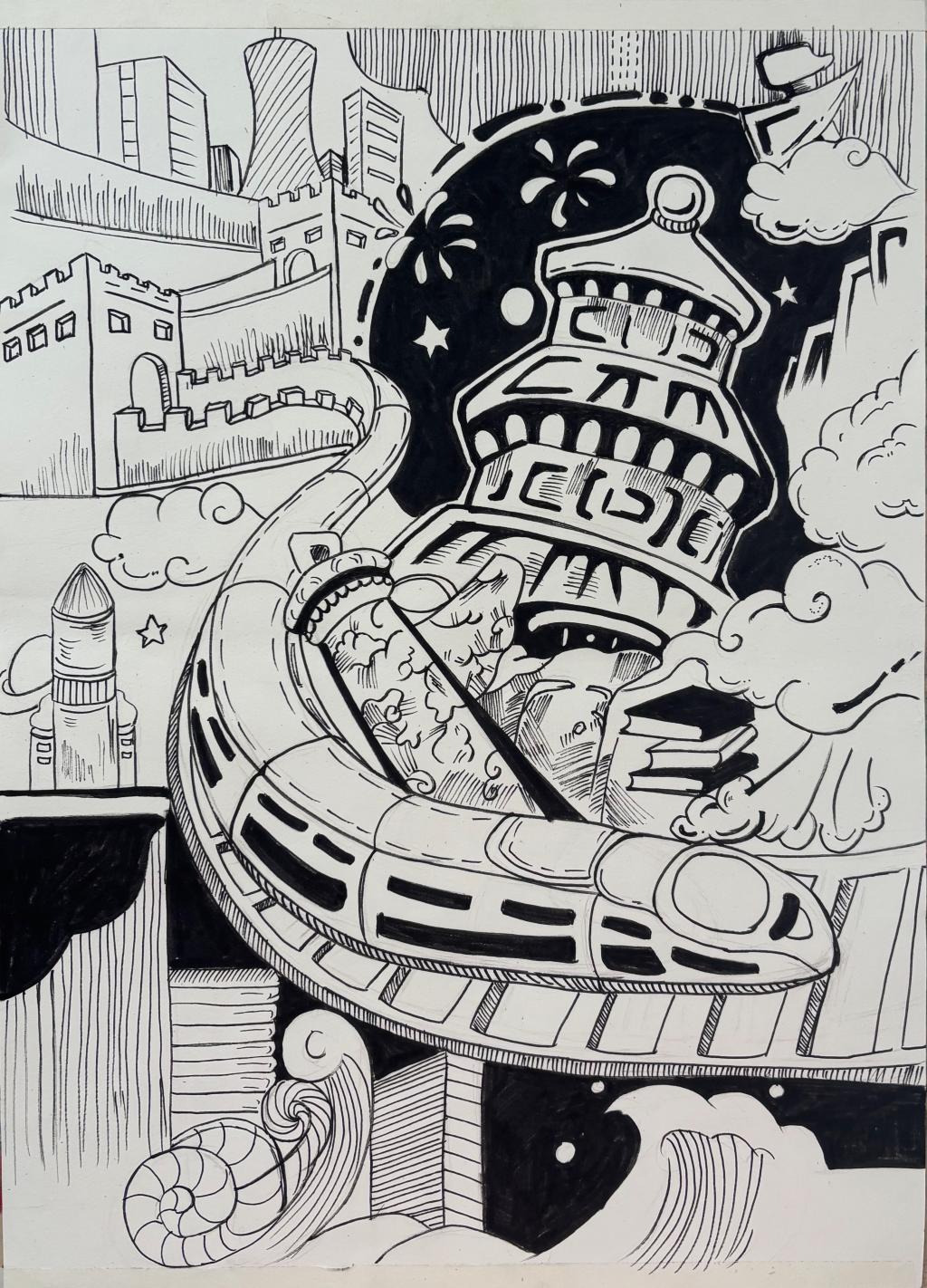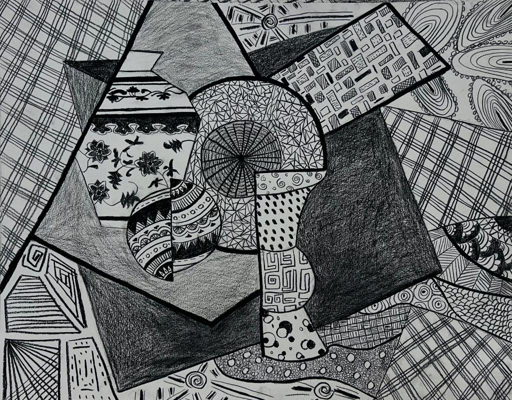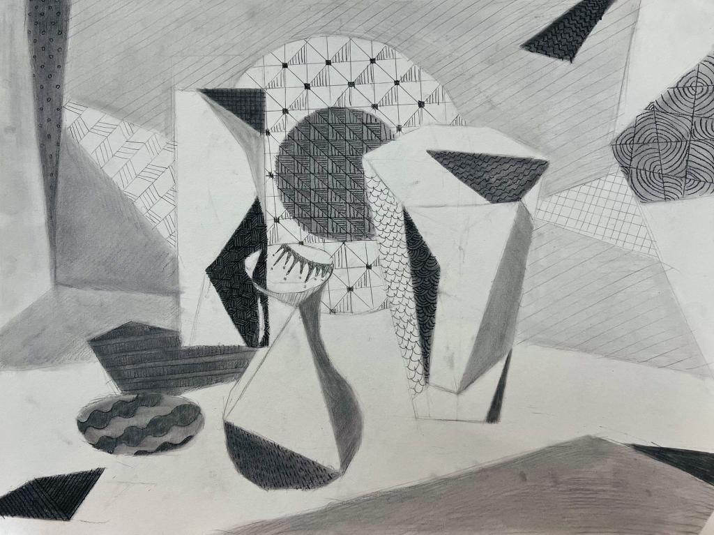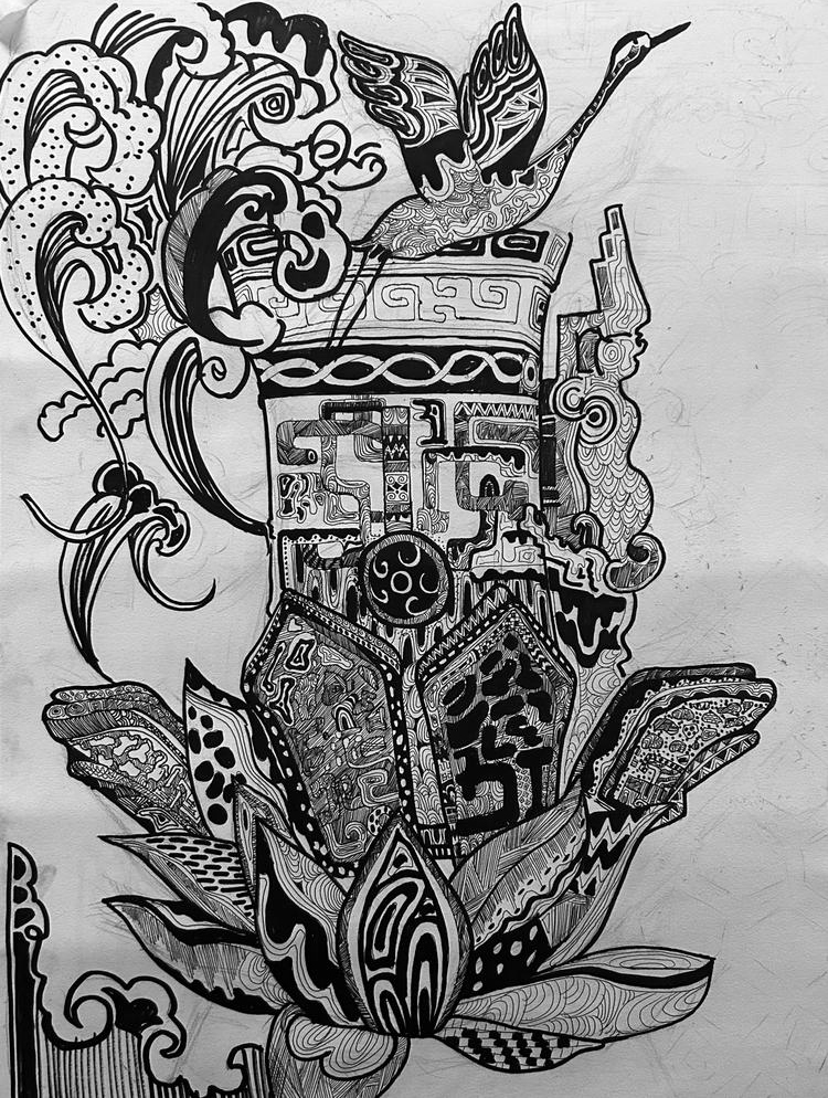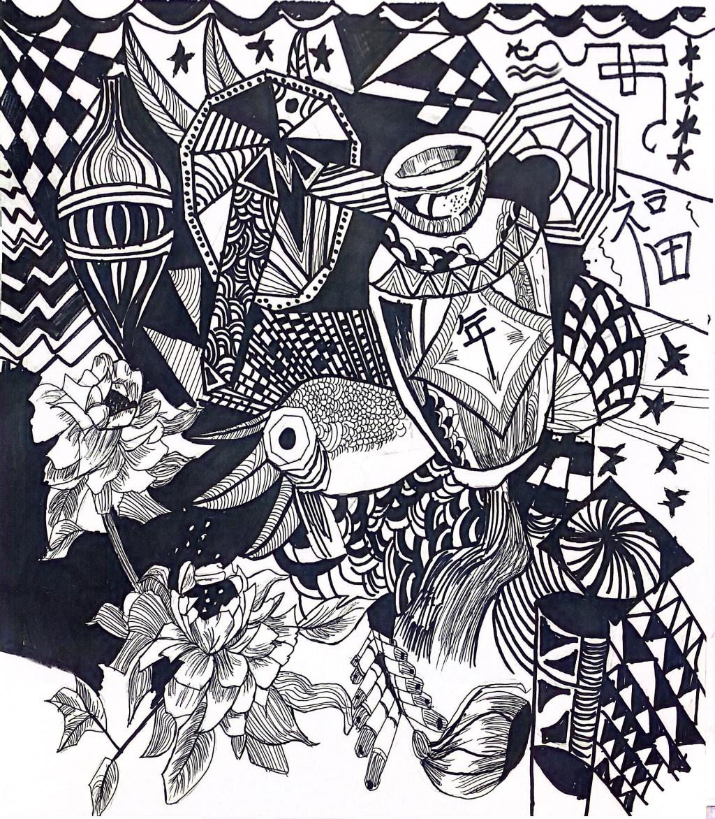 本次展出的作品,有的聚焦传统审美纹样,从传统绘画中提取设计元素,赋予素描作品别样的装饰美感;有的大胆突破写实边界,通过夸张、变形与重组的手法,将日常物件转化为充满想象力的设计雏形;还有的大胆尝试抽象表达,用极简的笔触勾勒出充满韵律感的画面。一笔一画皆是思考,一纸一墨尽是创意,每一幅作品都是同学们观察能力、思考能力与动手能力的结晶,这些作品不仅是技法的凝练,更是同学们设计思维的萌芽。