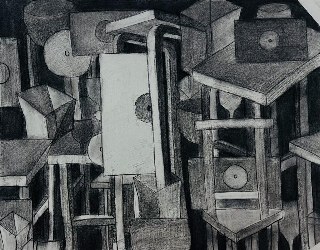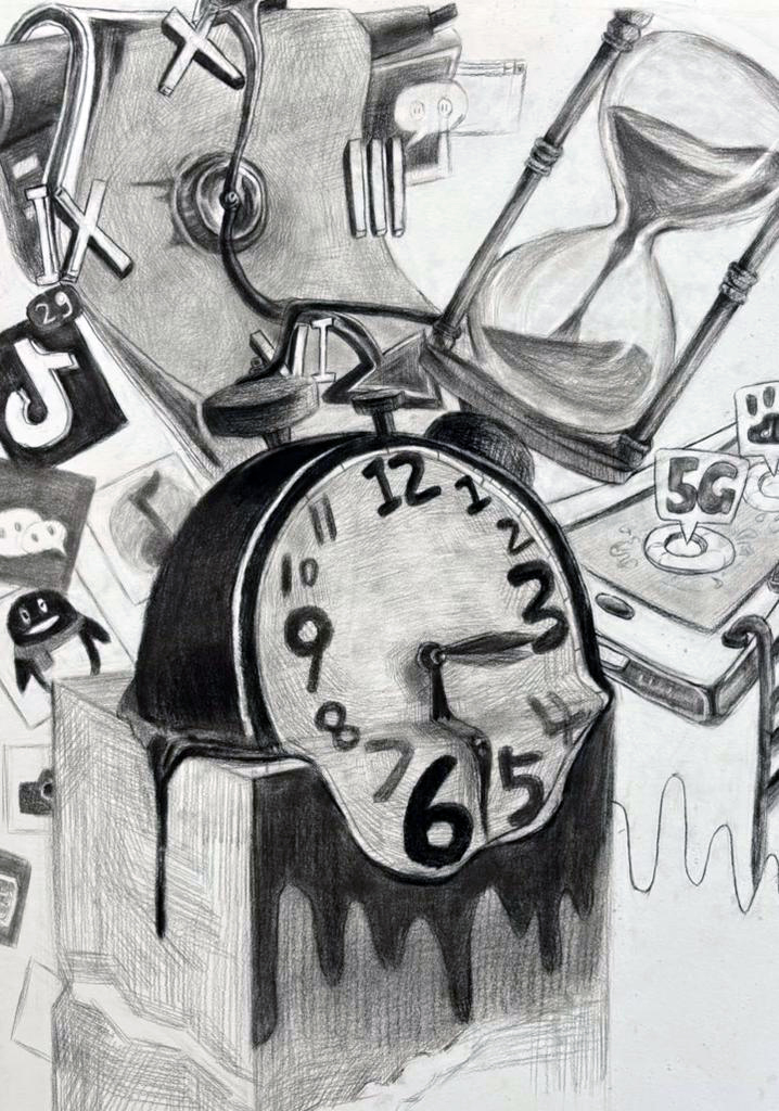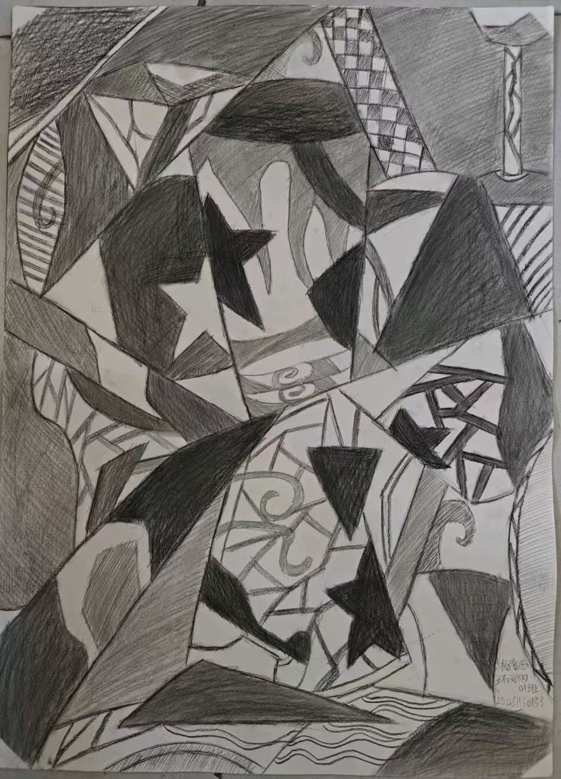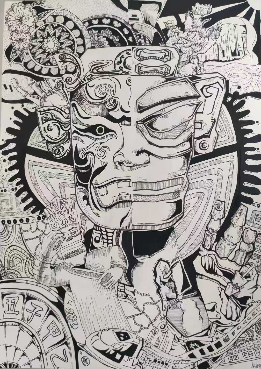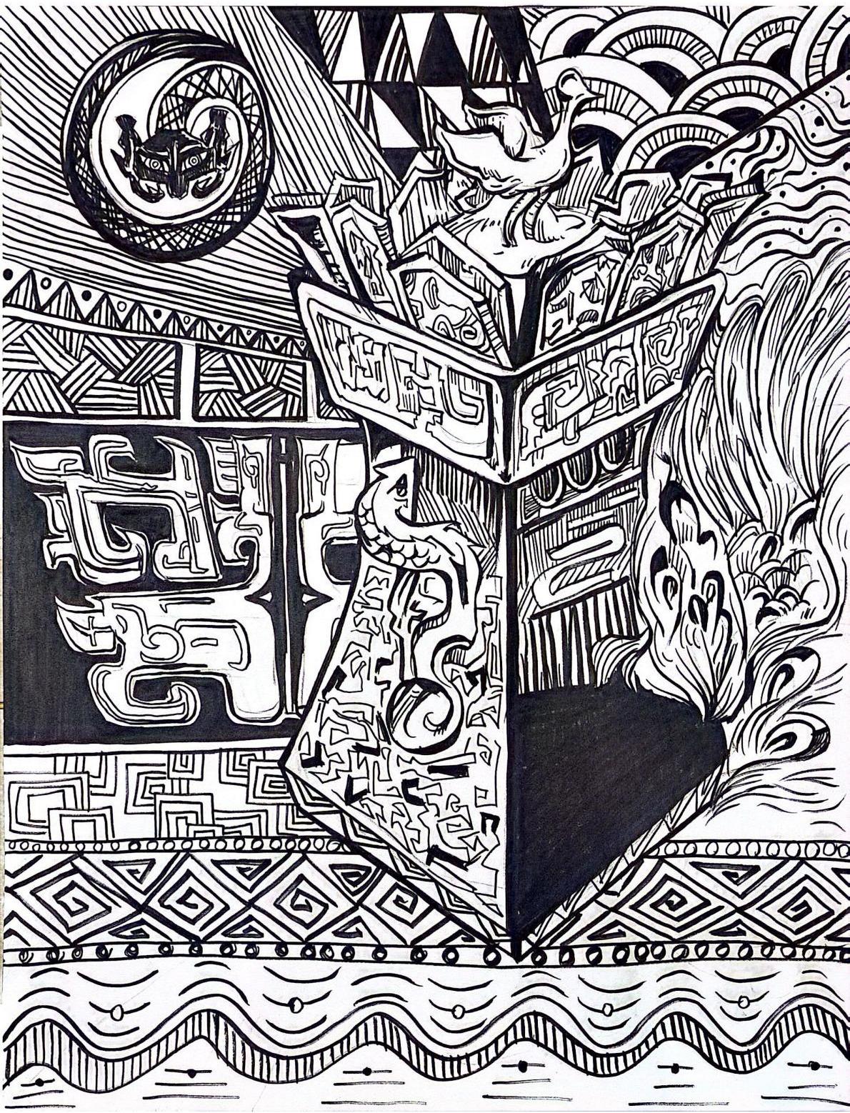本次展出的作品,有的聚焦传统审美纹样,从传统绘画中提取设计元素,赋予素描作品别样的装饰美感;有的大胆突破写实边界,通过夸张、变形与重组的手法,将日常物件转化为充满想象力的设计雏形;还有的大胆尝试抽象表达,用极简的笔触勾勒出充满韵律感的画面。一笔一画皆是思考,一纸一墨尽是创意,每一幅作品都是同学们观察能力、思考能力与动手能力的结晶,这些作品不仅是技法的凝练,更是同学们设计思维的萌芽。