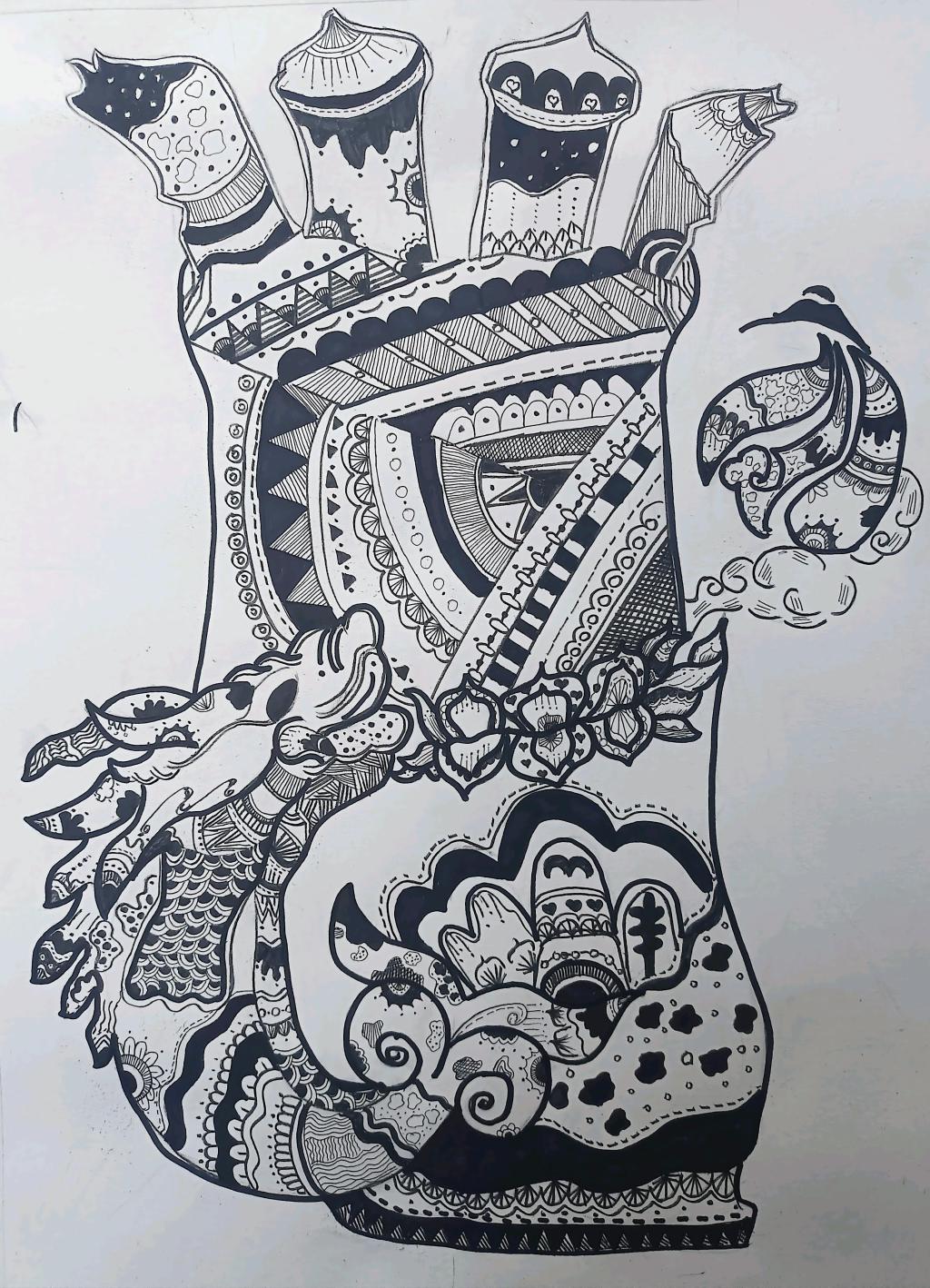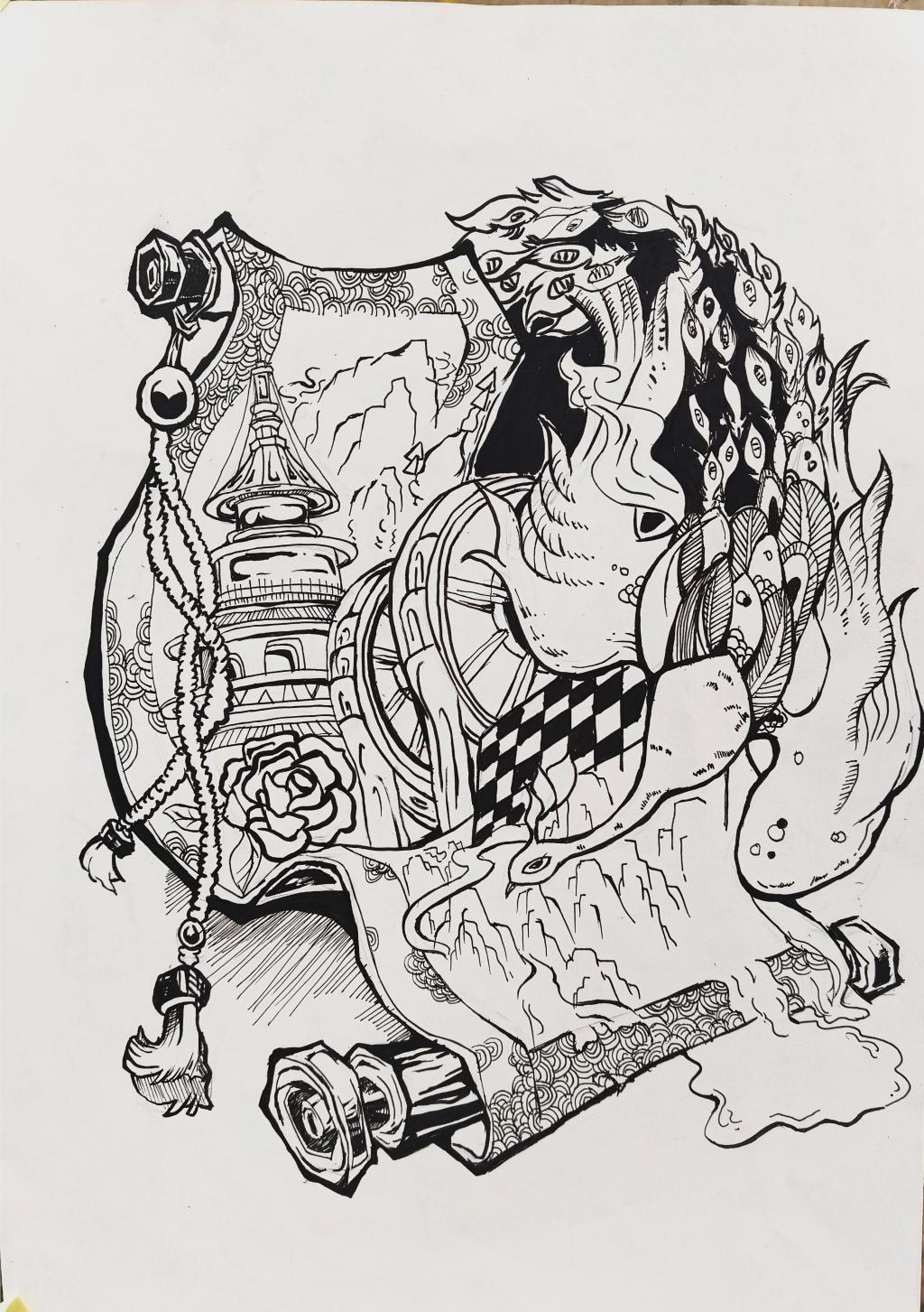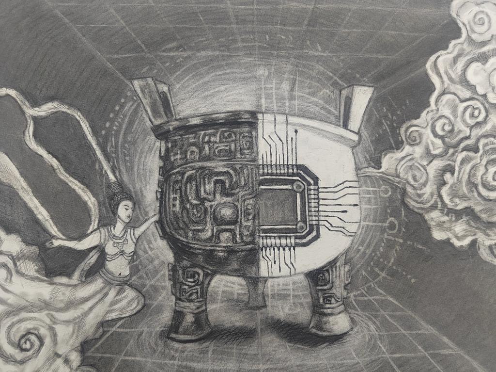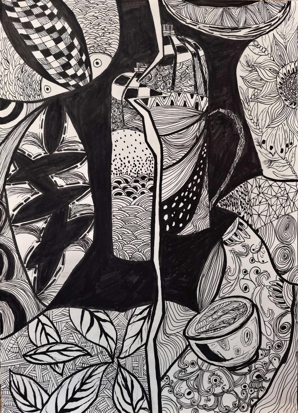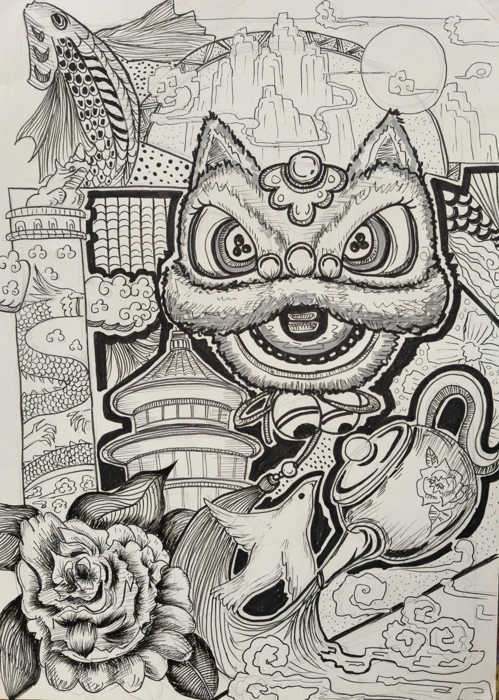 本次展出的作品,有的聚焦传统审美纹样,从传统绘画中提取设计元素,赋予素描作品别样的装饰美感;有的大胆突破写实边界,通过夸张、变形与重组的手法,将日常物件转化为充满想象力的设计雏形;还有的大胆尝试抽象表达,用极简的笔触勾勒出充满韵律感的画面。一笔一画皆是思考,一纸一墨尽是创意,每一幅作品都是同学们观察能力、思考能力与动手能力的结晶,这些作品不仅是技法的凝练,更是同学们设计思维的萌芽。