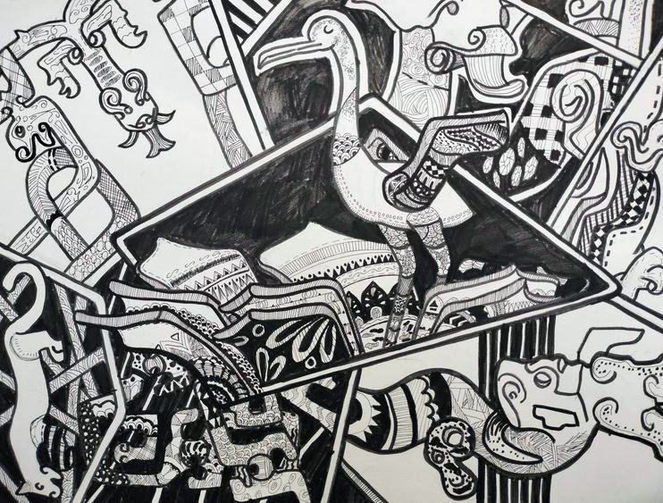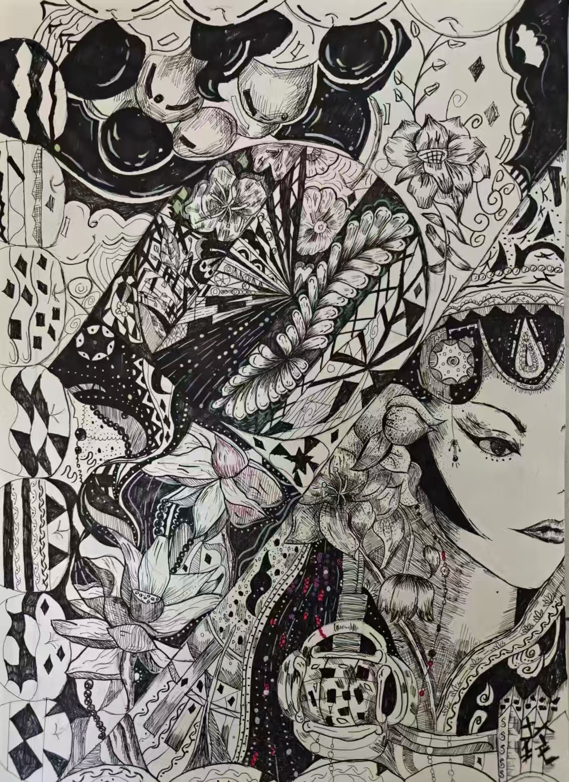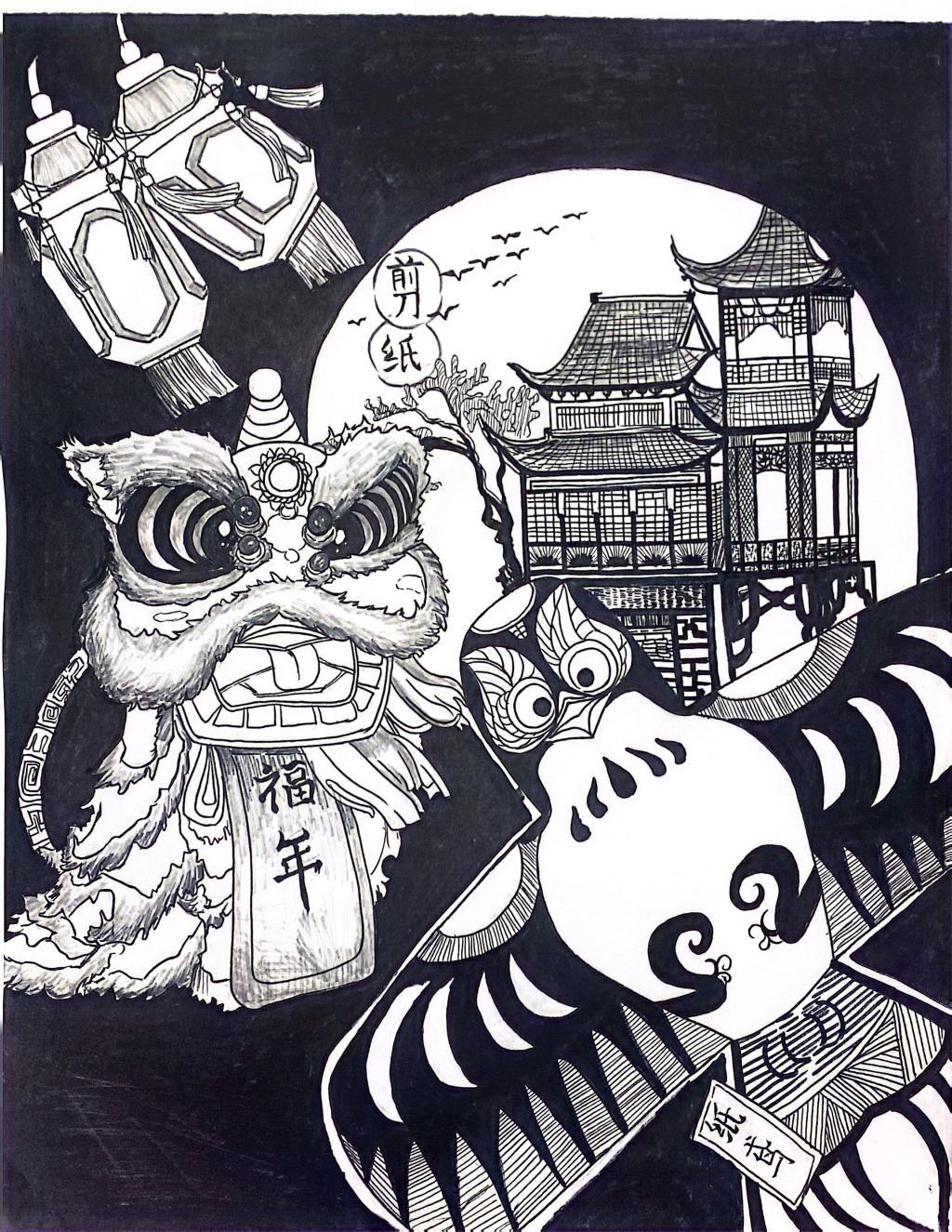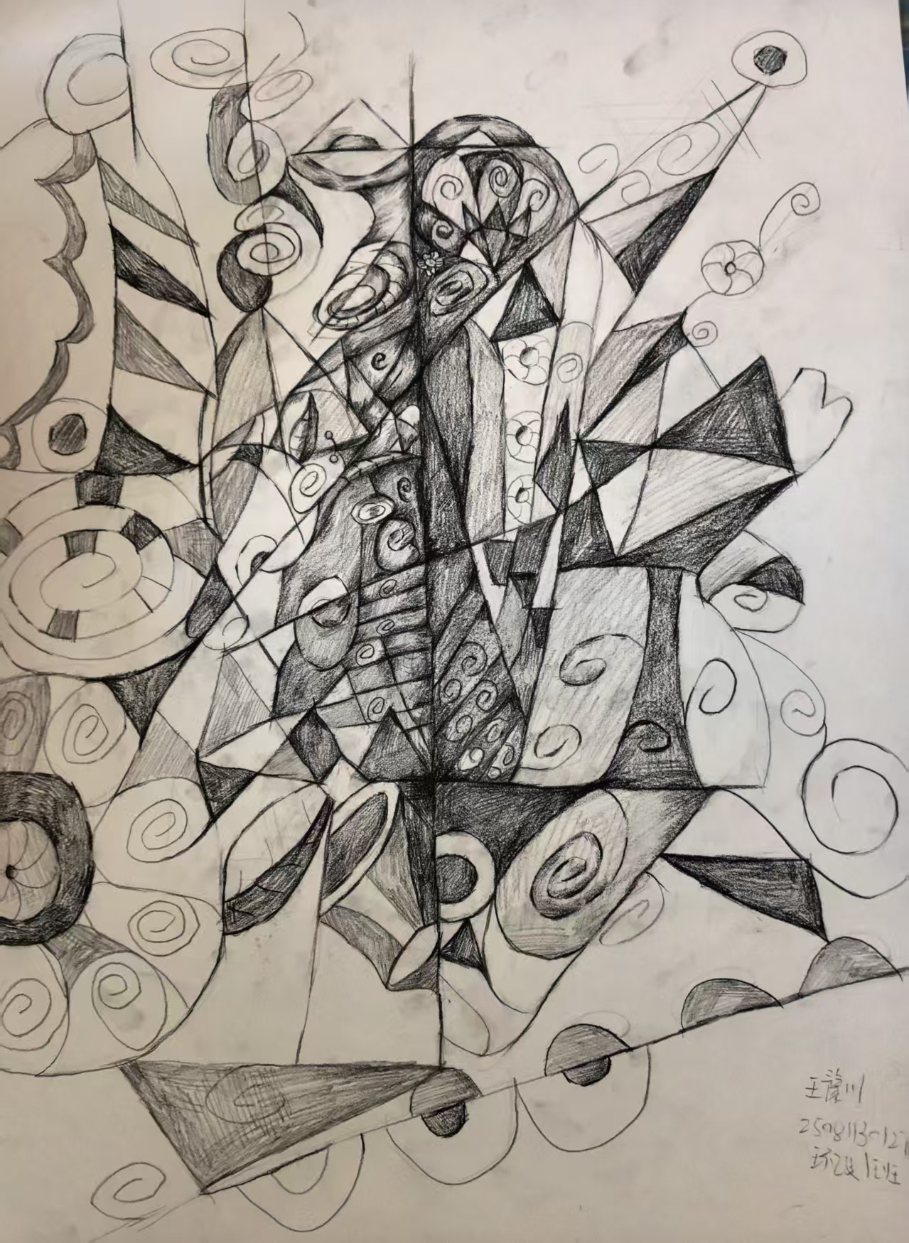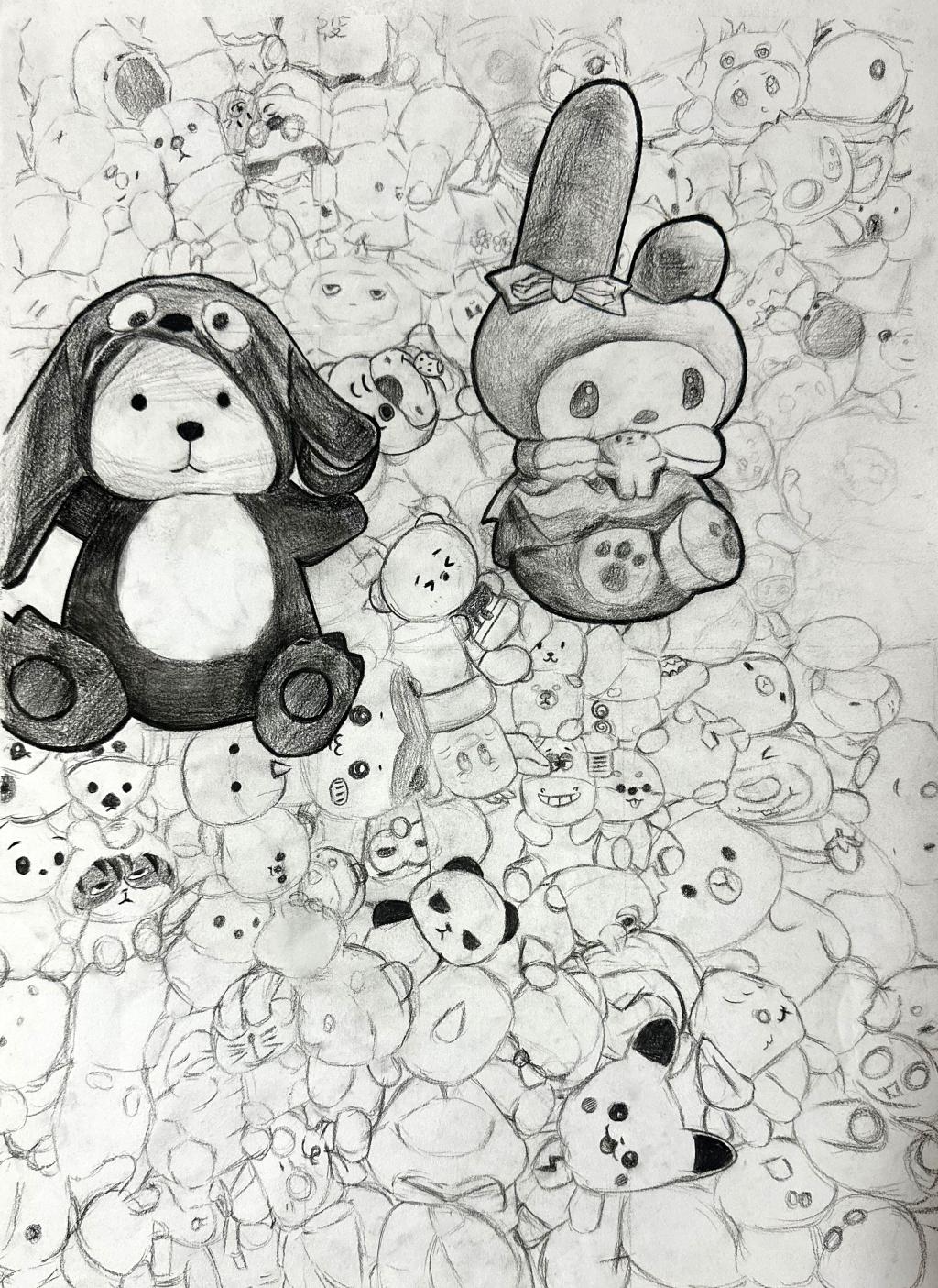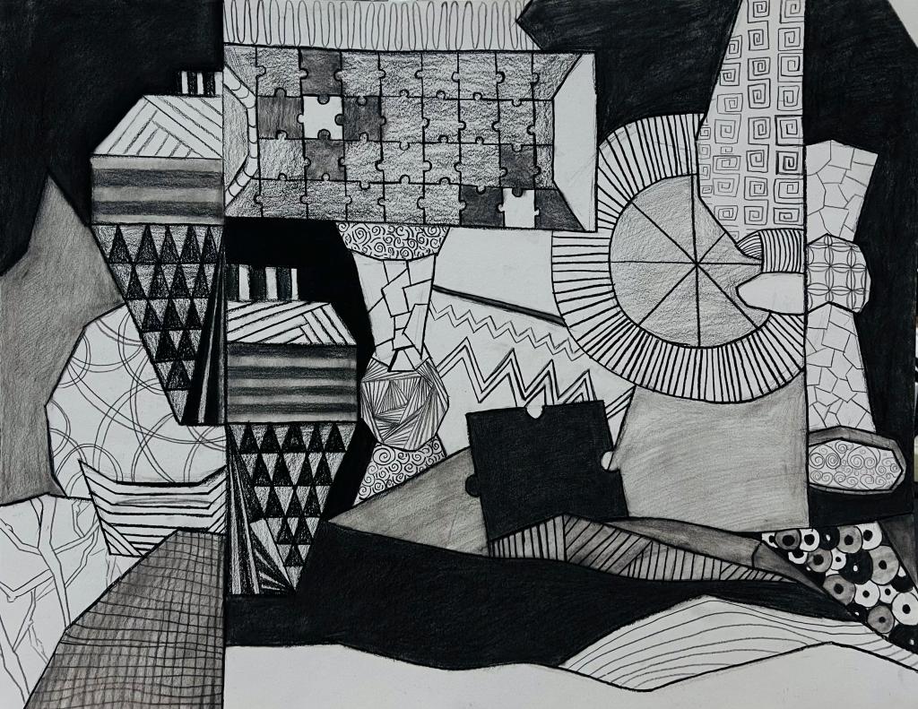 本次展出的作品,有的聚焦传统审美纹样,从传统绘画中提取设计元素,赋予素描作品别样的装饰美感;有的大胆突破写实边界,通过夸张、变形与重组的手法,将日常物件转化为充满想象力的设计雏形;还有的大胆尝试抽象表达,用极简的笔触勾勒出充满韵律感的画面。一笔一画皆是思考,一纸一墨尽是创意,每一幅作品都是同学们观察能力、思考能力与动手能力的结晶,这些作品不仅是技法的凝练,更是同学们设计思维的萌芽。