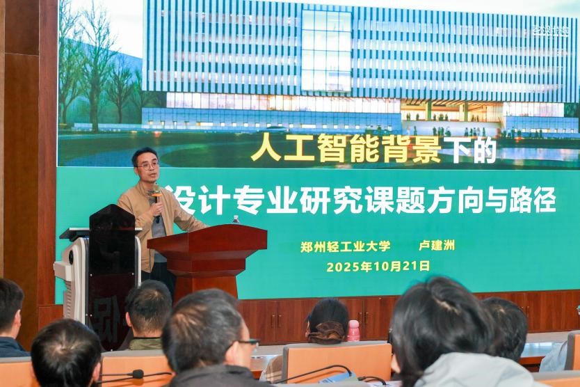 (图/文 方雅洁)2025年10月21日下午,365VIP英国上市官网邀请郑州轻工业大学365VIP英国上市官网副经理卢建洲教授在公司建工楼天健厅作了题为《人工智能背景下的设计专业研究课题方向与路径》的学术讲座,讲座由365VIP英国上市官网副经理张强主持,公司全体无课师生代表积极参与,共同聆听了这场思想盛宴。