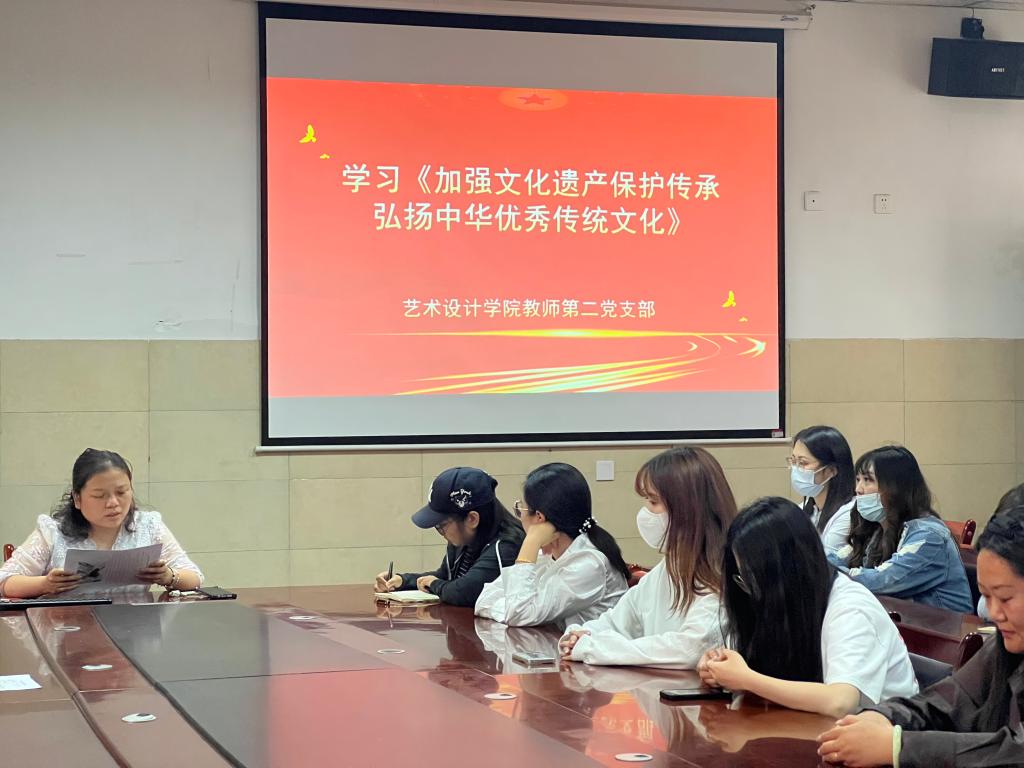 会议开始党支部书记郭克景同志发表了热情洋溢的致辞,强调了文化遗产对于国家和民族的重要意义,以及作为艺术设计类专业师生在文化遗产保护和传承中应肩负的责任和使命。随后,多名党员干部结合各自的专业特点,深入探讨了如何将传统文化元素融入现代艺术设计之中,既保持文化的传承性,又体现设计的创新性。就文化遗产保护传承与艺术设计融合的话题展开了热烈讨论。大家一致认为,作为艺术设计类专业的教师,应该积极学习传统文化知识,增强文化自信,同时在设计实践中不断探索传统文化的现代表达方式,推动传统文化的创新发展。