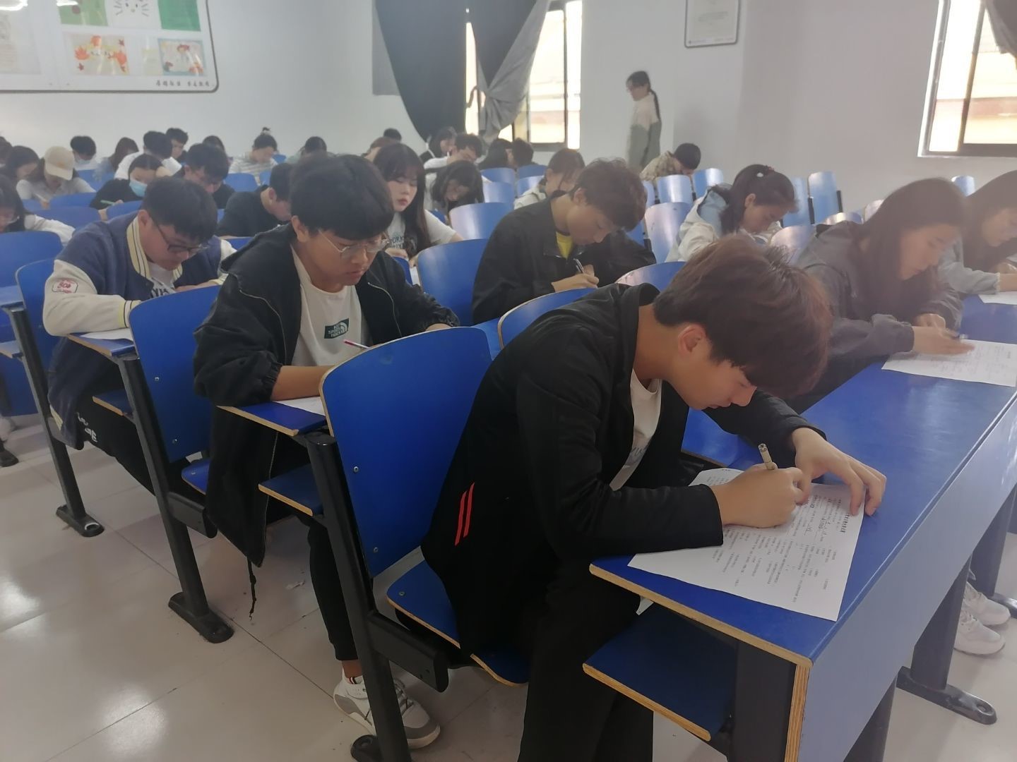 结业考试内容涉及党章、党史、党的基本理论等知识。考试过程中,同学们认真答题,考场全程秩序井然,监考人员进行了严肃、认真的监考。