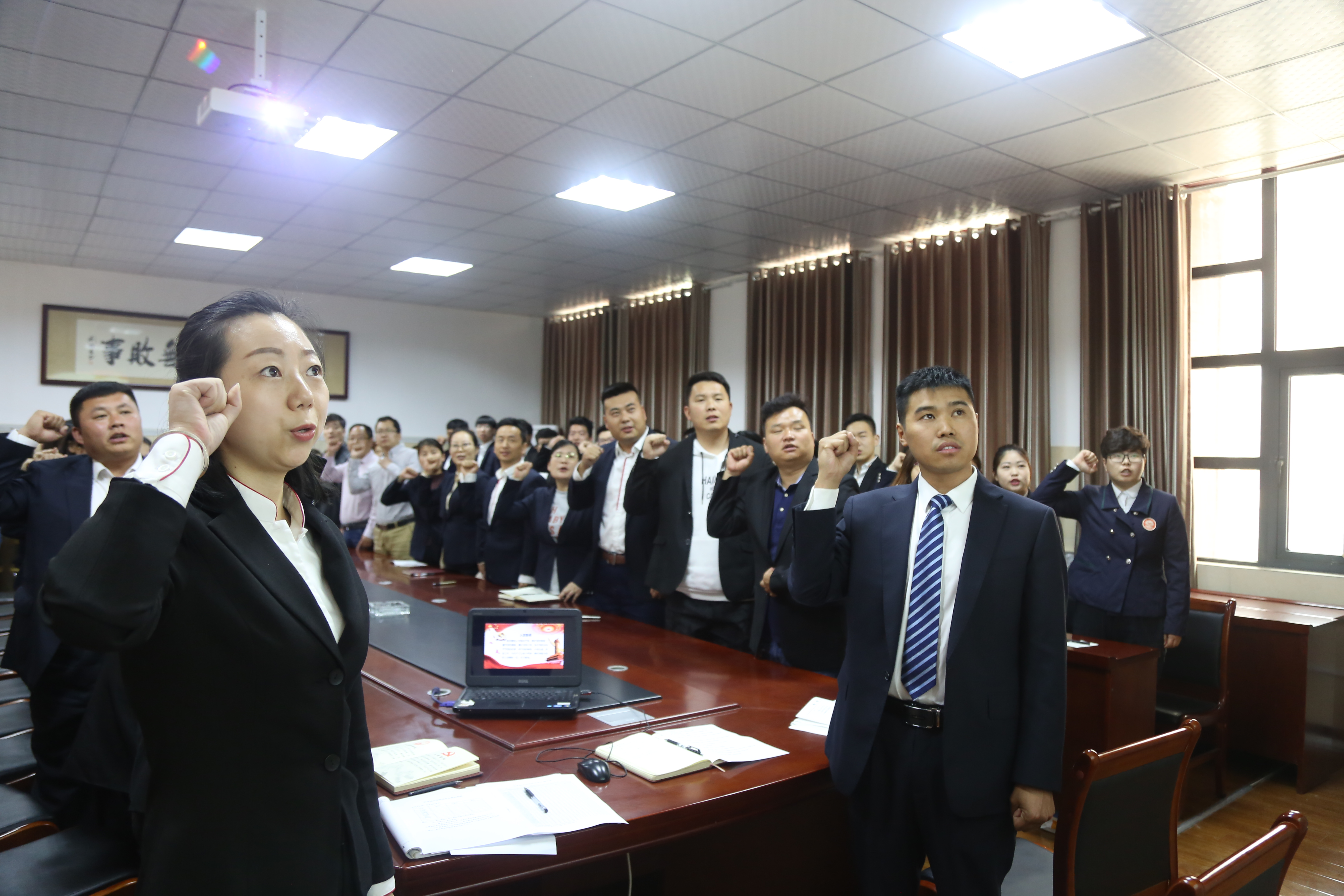 图为 公司全体党员师生共同重温入党誓词