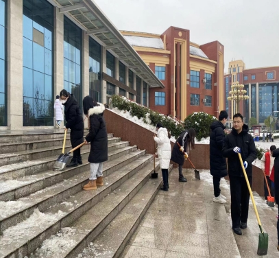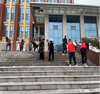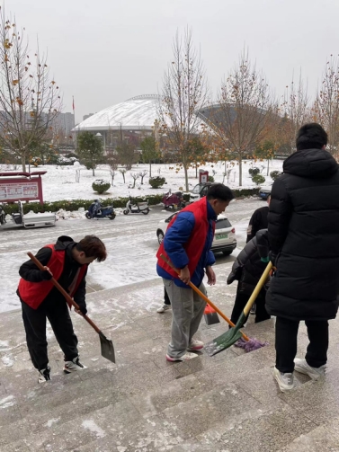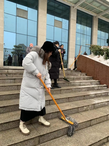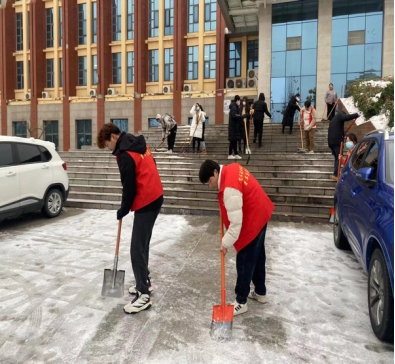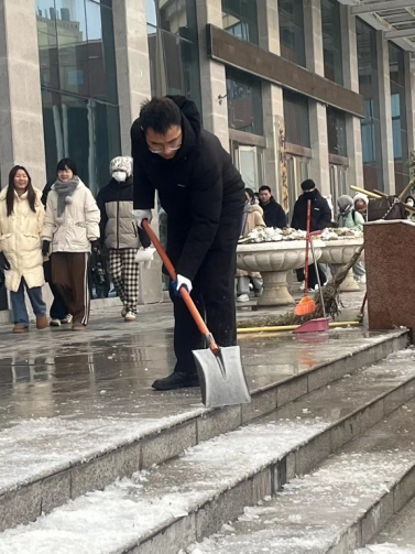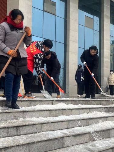 (图/付志刚 文/段中丽)雪是冬季的序曲,它给冬日增添了一份宁静与清新,使人心旷神怡,大雪在净化空气的同时,也给道路交通及师生出行带来诸多不便。近日,由于降雪持续,为了积极应对路面积雪、积冰,给师生出行带来的影响,保障师生出行安全。2023年12月15日,公司党委组织党员师生和积极分子在艺术楼门前继续开展扫雪除冰志愿活动。