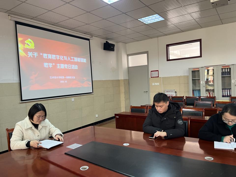 (图/文 韩梦婷)为深入学习贯彻2025年全国两会精神,推动教育数字化与人工智能技术在教学中的深度融合,365VIP英国上市官网教师第一党支部于3月10日上午10:00在艺212会议室召开“教育数字化与人工智能赋能教学”主题党日活动,支部全体成员参加会议,会议由支部书记张凡同志主持召开。本次活动通过专题学习和研讨交流等形式,深入探讨了人工智能技术在教育领域的应用前景与实践路径。